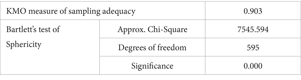 As shown in the Table 5, the KMO value is 0.903, which exceeds the 0.8 threshold, indicating good construct validity and that the data are highly suitable for factor extraction.