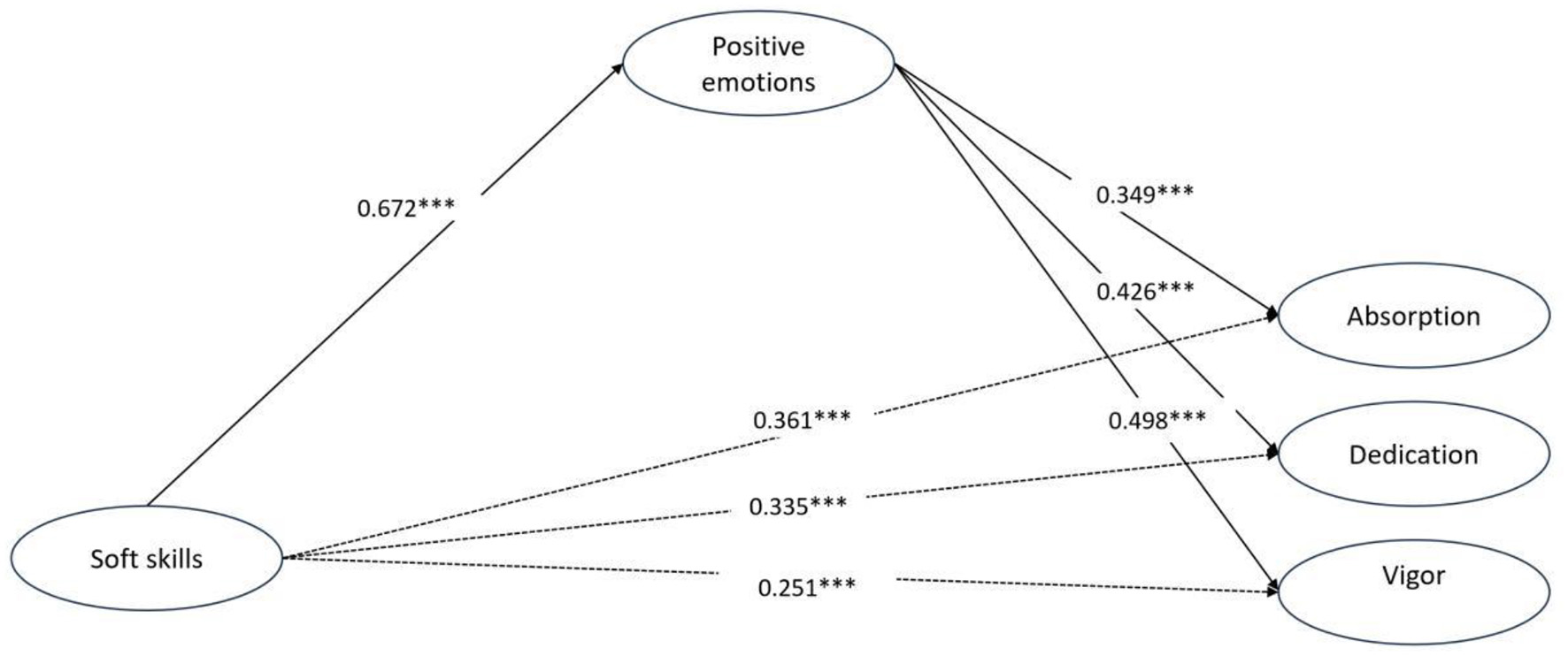 H4: Positive emotions mediate the relationship between soft skills and academic engagement (H4a-absorption, H4b-dedication and H4c-vigor).