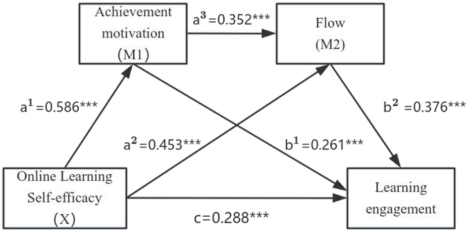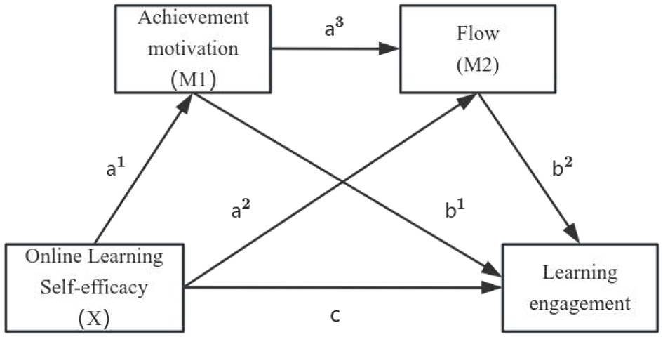 (a1a3b2). Achievement motivation and flow play chain-mediating roles between online learning self-efficacy and learning engagement.