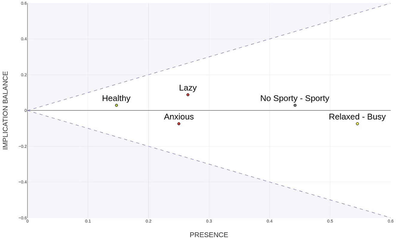This model retains the spirit of Hinkle's superordinacy concept while extending it by incorporating both the total implication connectivity and the directional balance of each construct. The Presence index quantifies the overall level of implication (inputs and outputs), identifying broadly connected constructs. Meanwhile, the Implication Balance captures the hierarchical tendency–whether a construct acts predominantly as an originator (superordinate) or as a recipient (subordinate) of implications.