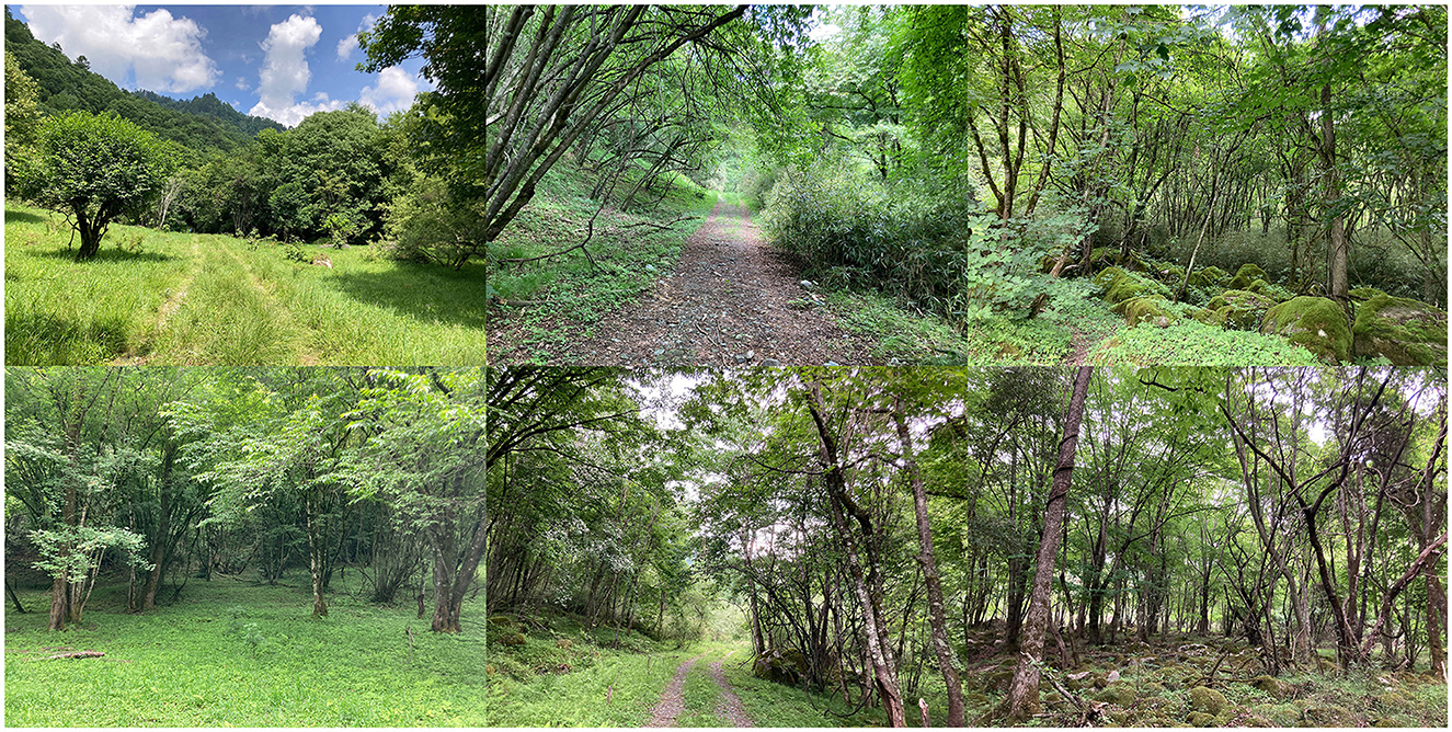 Forest bathing includes walking and breathing exercises. We selected natural scientific research and public tourism routes as experimental sites for forest bathing. Specifically, this included forest bathing in pure natural environments (FBN), and forest bathing in natural environments with cultural elements (FBC) (Figures 2, 3).