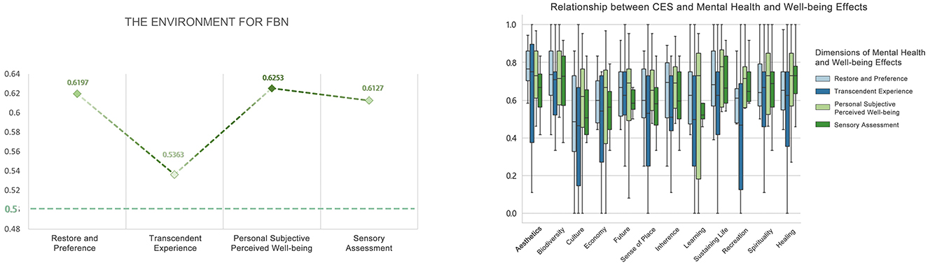 Figure 15. Relationship between CES and mental health and wellbeing effects (the environment for FBN).