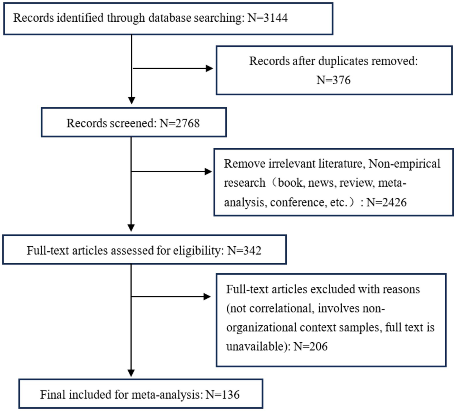 A protocol for this work was registered on the Open Science Framework (OSF: https://osf.io/ph365) In order to identify published and unpublished samples that examined the relationship between leadership styles and perceived insider status. A thorough search was conducted. We searched Chinese databases including CNKI, Wanfang Data, and VIP Chinese Scientific Journals. English databases searched include ProQuest, Web of Science, and PubMed. The search terms combine “leadership” OR “leader” with “perceived insider status” OR “insider” OR “perceived insider identity.” The search includes publications up to December 2023.