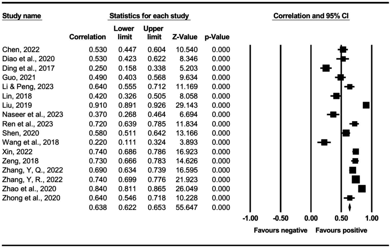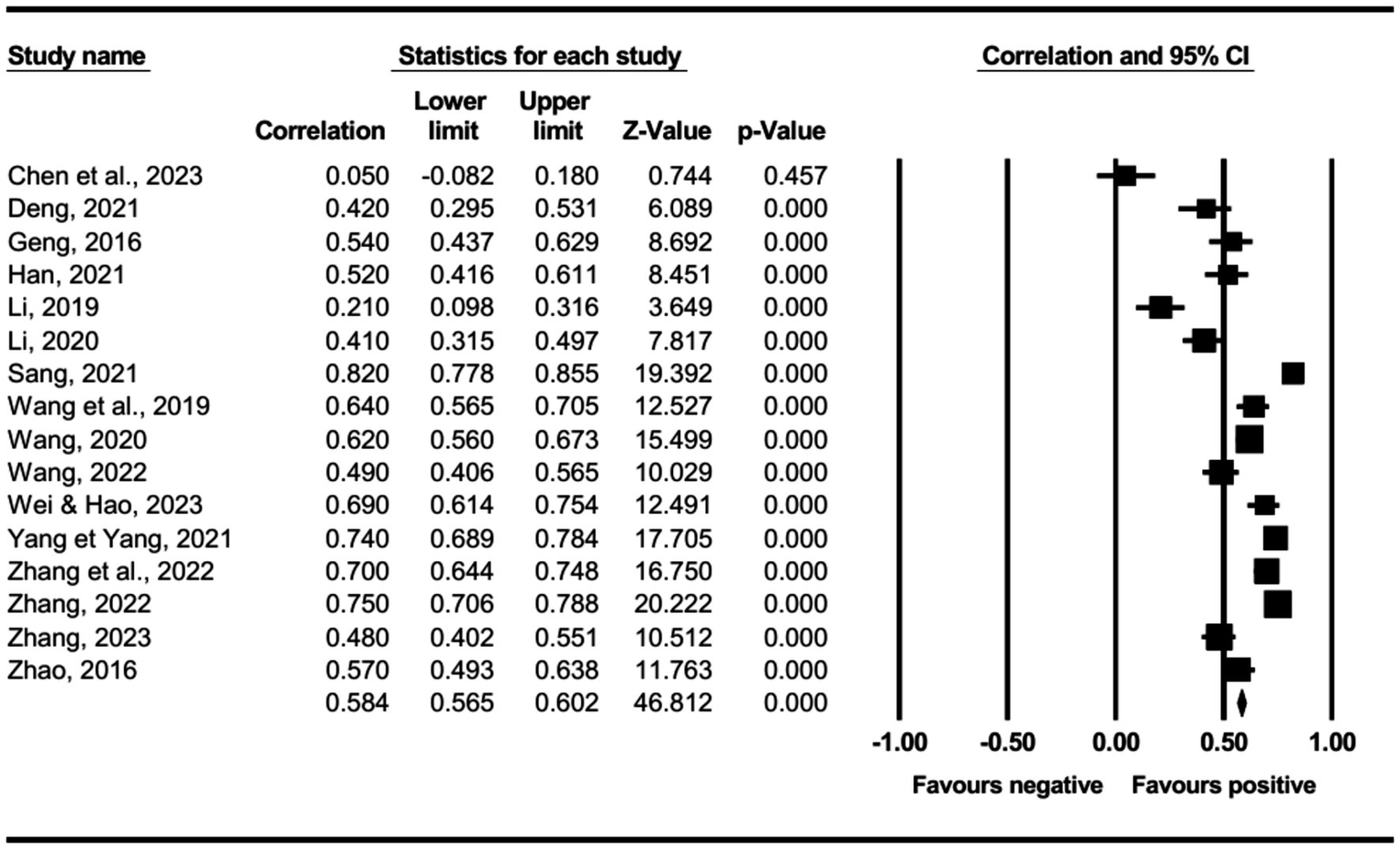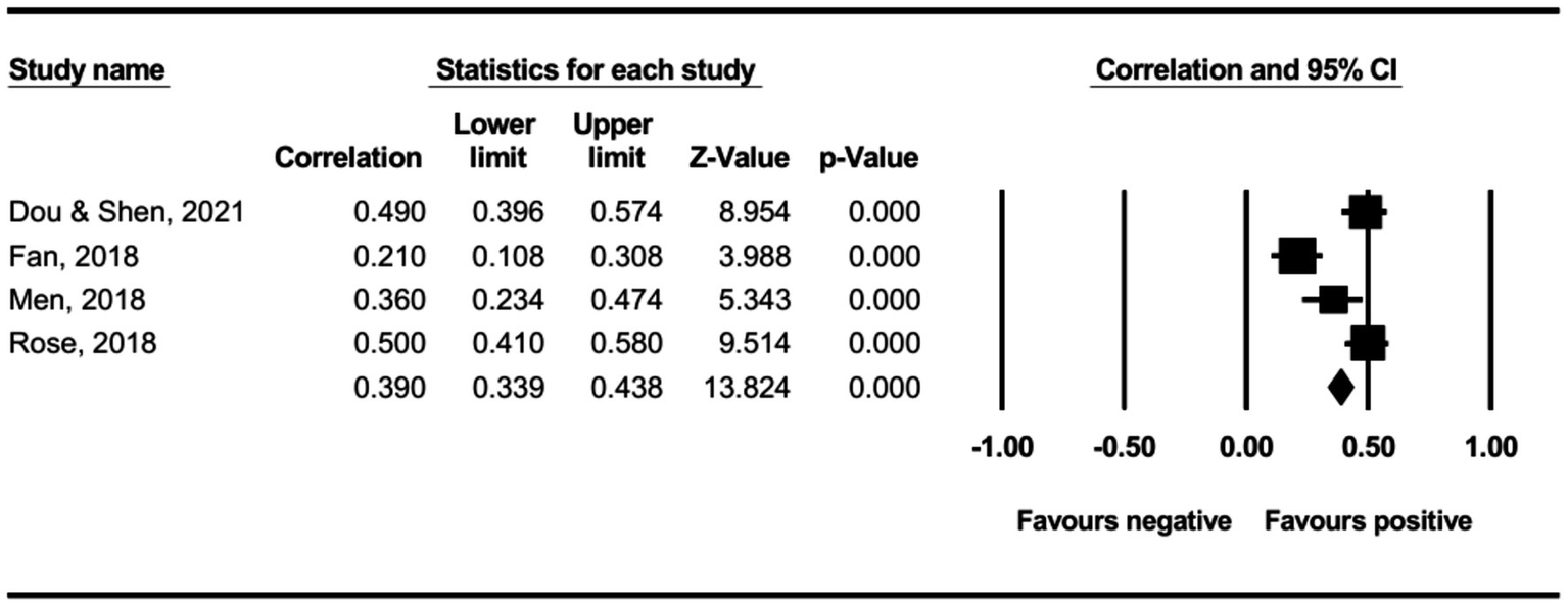 This study utilizes CMA3.0 for conducting meta-analysis tests. The correlation coefficient (r) is used as the effect size, and each effect size are corrected using reliability coefficients. For studies with missing reliability information, we used the mean of reliabilities of the studies that reported reliability information, and ultimately, the true correlation coefficient (ρ) is calculated (Hunter and Schmidt, 2004). We also calculated corrected 95% confidence intervals to determine the statistical significance of effect sizes. If the confidence intervals do not include zero, effect sizes are considered to be statistically significant.