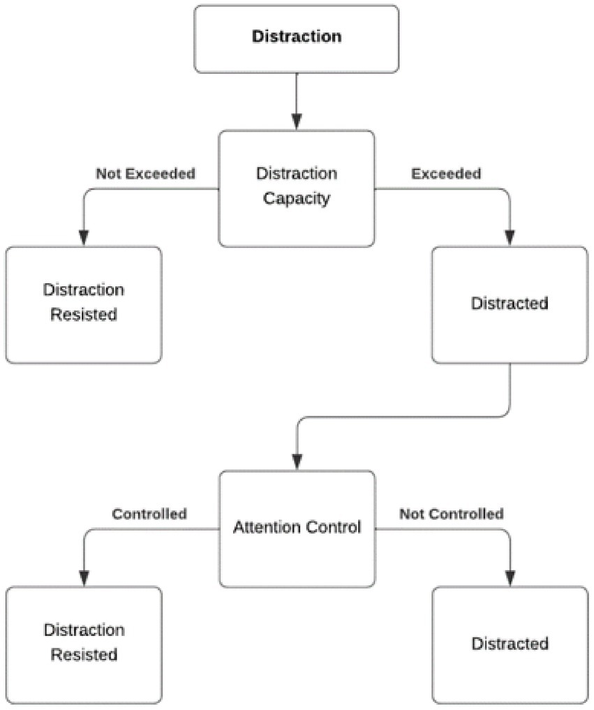 Kahneman’s Capacity Model provides a foundational and resource-based framework for understanding attention, proposing that attentional resources are limited and must be allocated among competing demands (Kahneman, 1973). From this perspective, distraction occurs when insufficient attentional resources are allocated to the primary task and excessive resources are unintentionally directed toward irrelevant stimuli, resulting in a shift of attention. Kahneman’s model offers a more comprehensive explanation by linking distraction to the dynamics of attentional allocation.