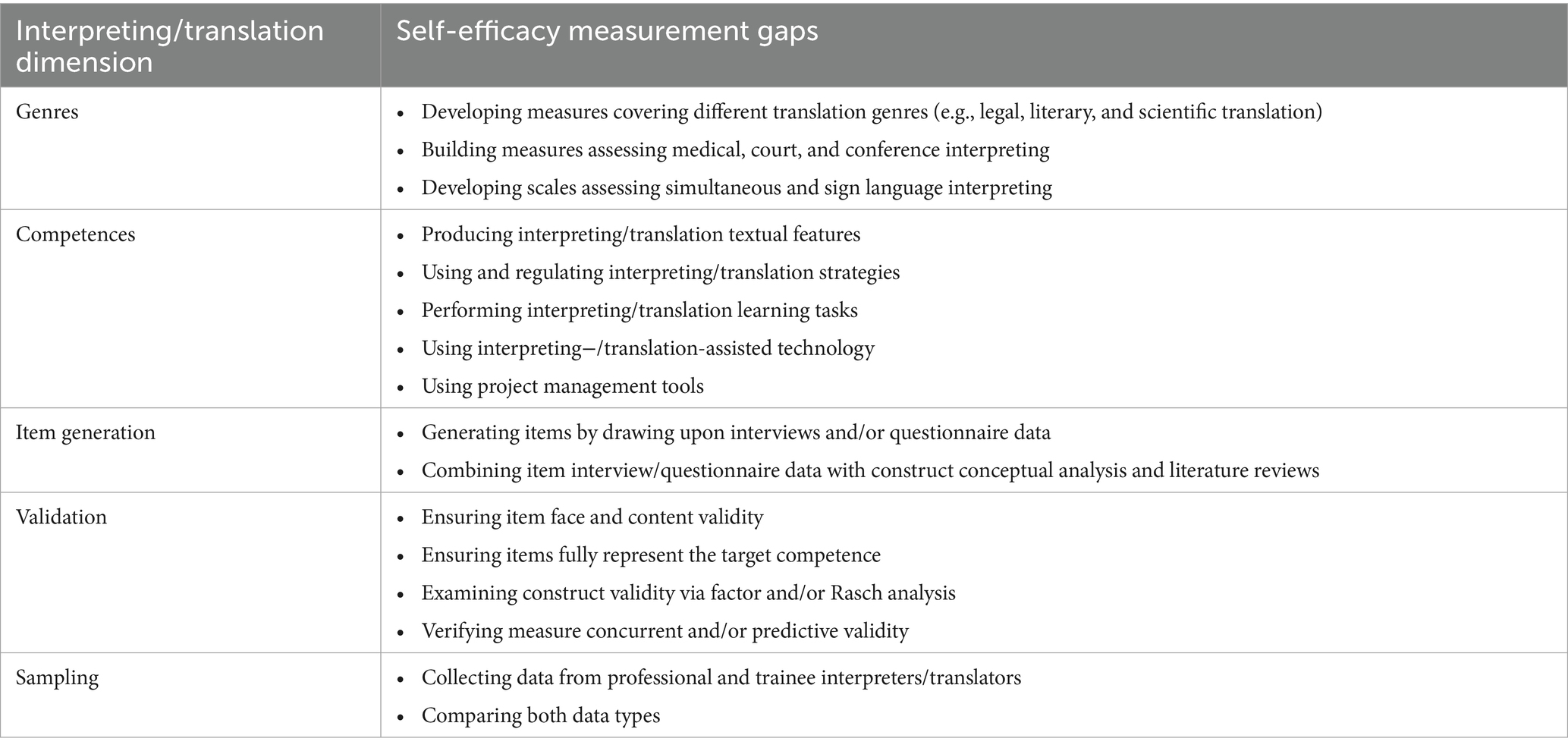Table 3. Some interpreting/translation self-efficacy measurement gaps need to be addressed in future research.