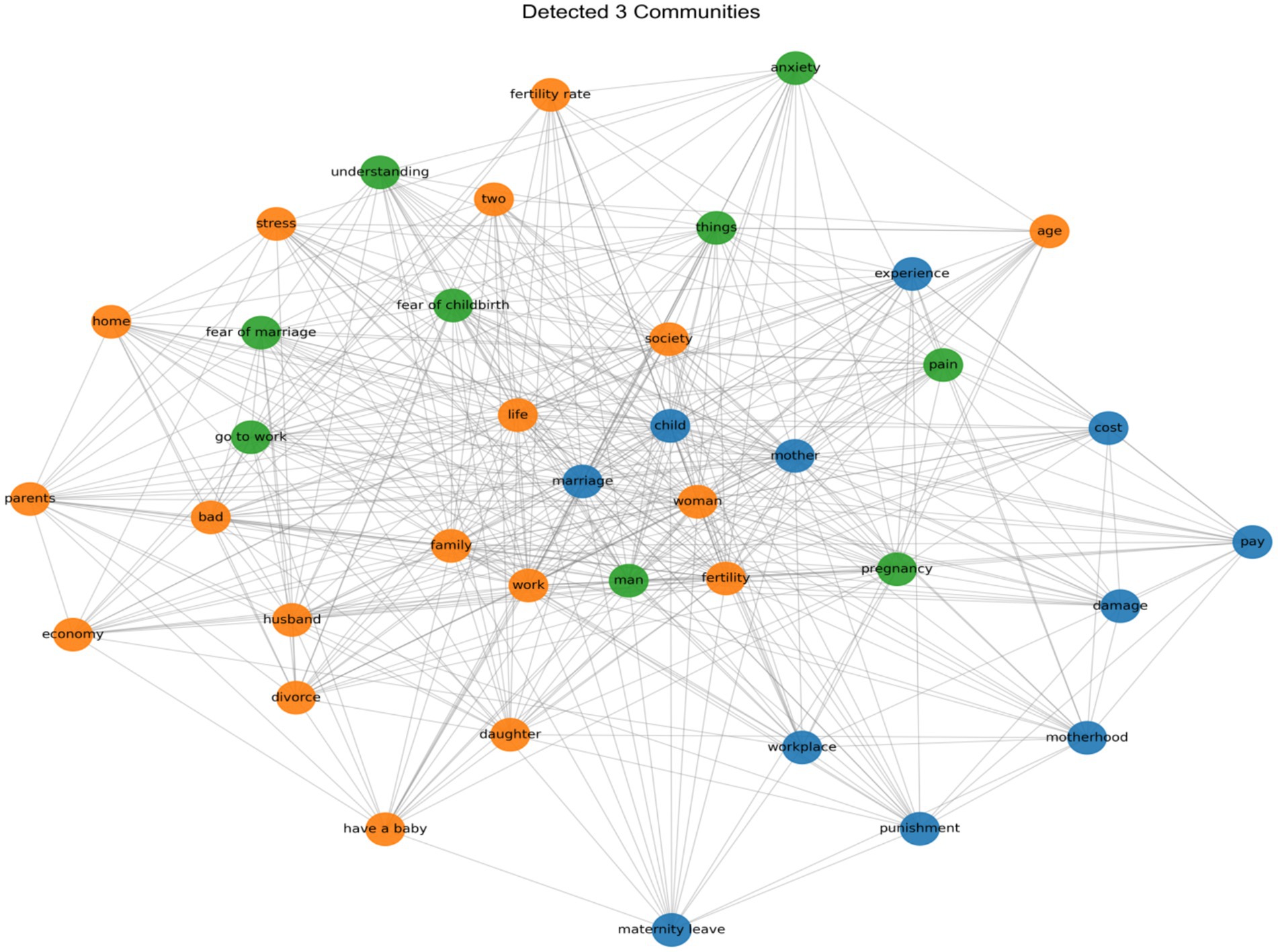 In summary, existing research on women’s fertility anxiety has predominantly focused on its negative causes and consequences—including physiological, psychological, and broader social structural factors—while largely overlooking women’s expressions of anti-fertility anxiety shaped by feminist values. Traditional studies on fertility attitudes have also relied heavily on questionnaire-based methods, which are limited by fixed designs and restricted sample coverage, making it difficult to capture individuals’ dynamic emotions and social interactions in digital contexts. Social media, as a key site for emotional expression and value negotiation, has yet to be systematically examined in empirical research on the dual dimensions of fertility attitudes—anxiety and anti-fertility anxiety (Xie and Chao, 2022). To address these gaps, the present study examines fertility and anti-fertility anxiety on social media through analyses of thematic content, semantic networks, and emotional orientations. This approach reveals the tensions and resonances between these perspectives, offering a dialectical understanding of the diversity and agency in Chinese women’s fertility attitudes.