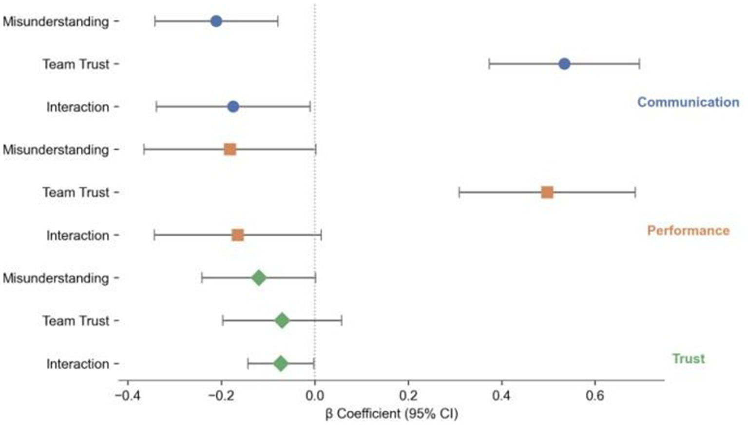 All models controlled for team type and misunderstanding type. None of the control variables reached statistical significance (p > 0.10), and inclusion did not substantially change the main effects reported in the primary analyses.