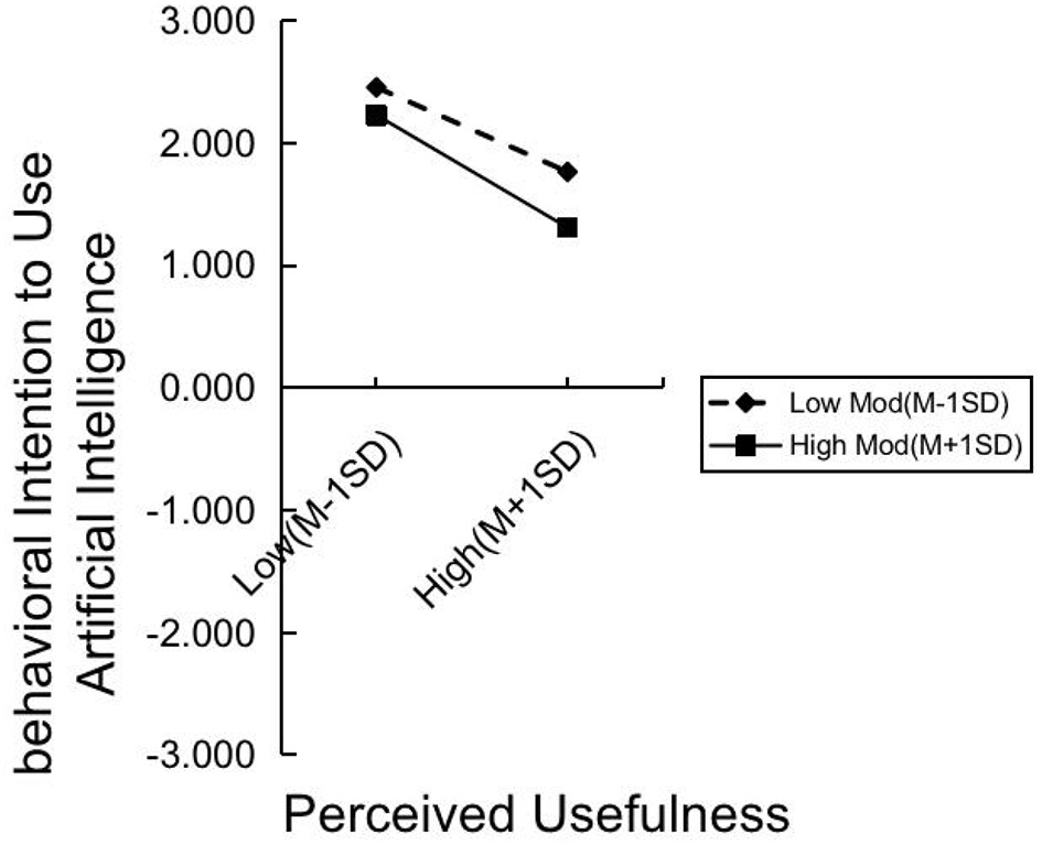 Hypothesis 10: Perceived risk negatively moderates the impact of perceived usefulness on media students' behavioral intention to use AI technology.