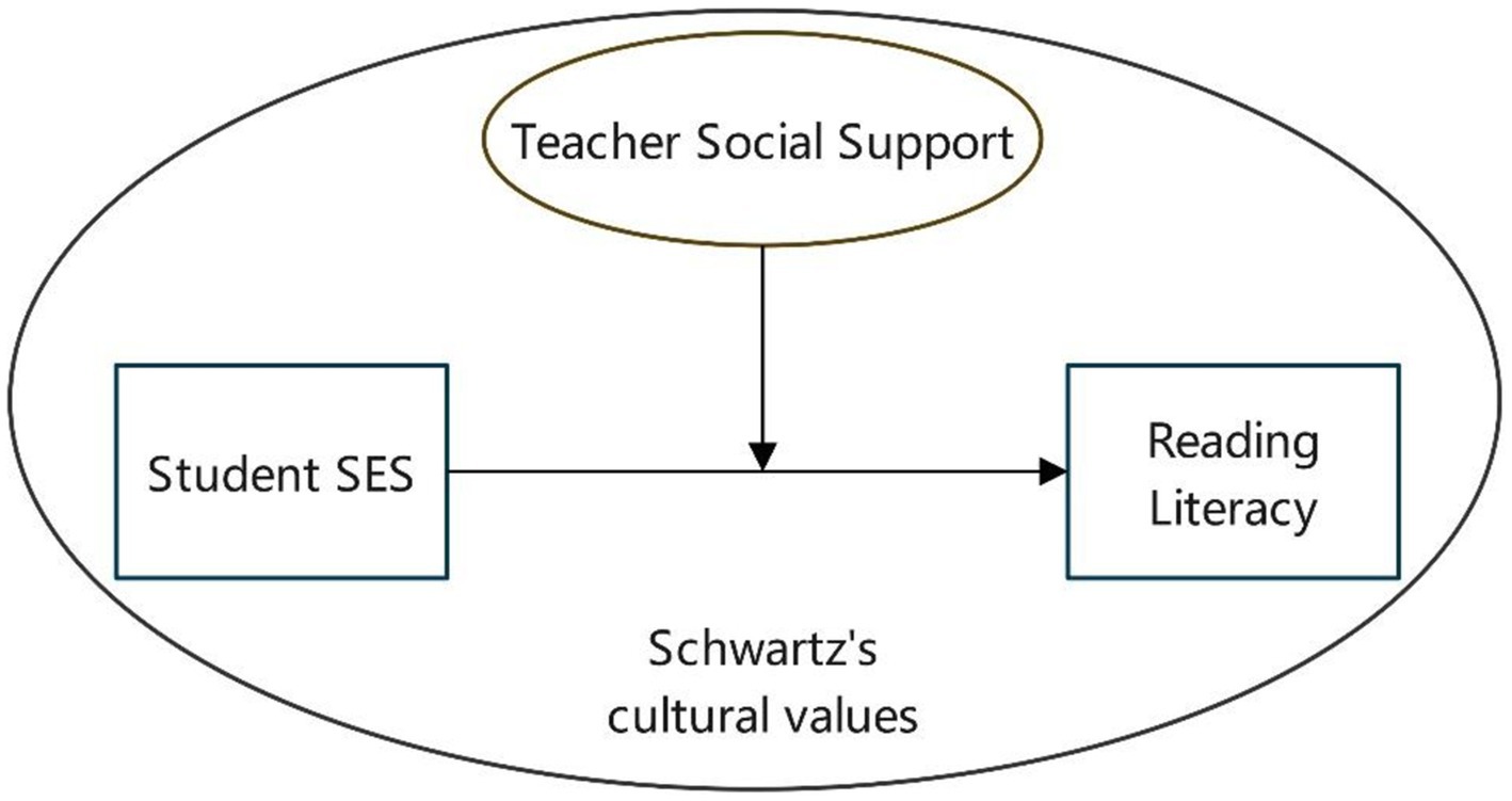 To address these gaps, namely the often-neglected multidimensional nature of TSS and the overlooked influence of cultural variables, this study utilizes data from the 2022 Program for International Student Assessment (PISA). Specifically, based on Bourdieu’s (1973, 1986) CRT, we investigate the moderating role of three TSS facets (i.e., teacher support, teacher emotional support, and teacher feedback) in the relationship between SES and student reading achievement across eight distinct cultural groups: African and the Middle Eastern, Confucian, East-Central European, East European, English-speaking, Latin American, South Eastern, and West European (Schwartz, 2009). Specifically, we explored following questions: