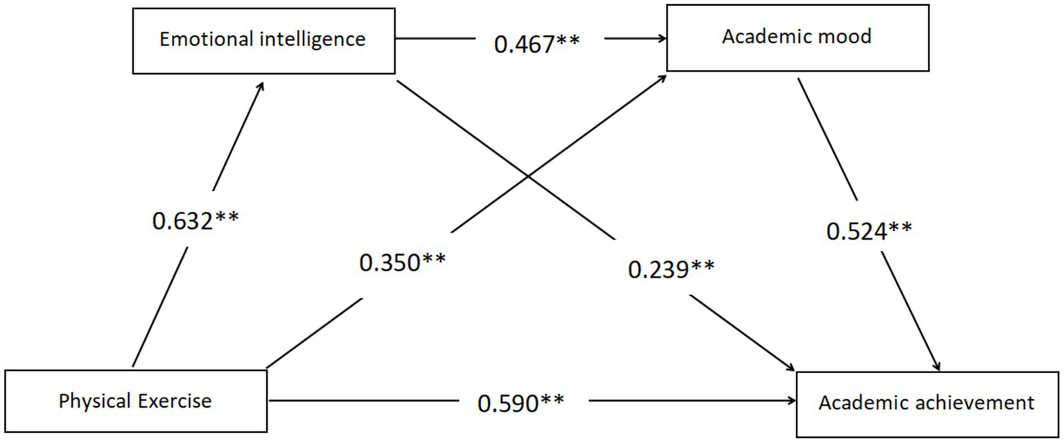 Therefore, the research hypothesis H4: Emotional intelligence and academic mood play a chain mediating role in physical exercise and academic achievement is proposed.