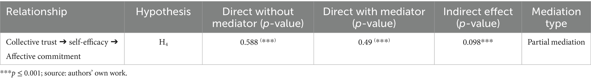 H4: Self-efficacy mediates the relationship between collective trust and affective commitment.