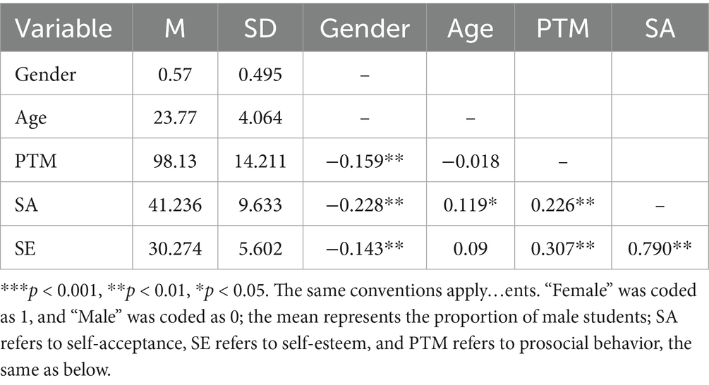 Hypothesis 1: College students’ self-acceptance, self-esteem and prosocial behavior are significantly positively correlated.