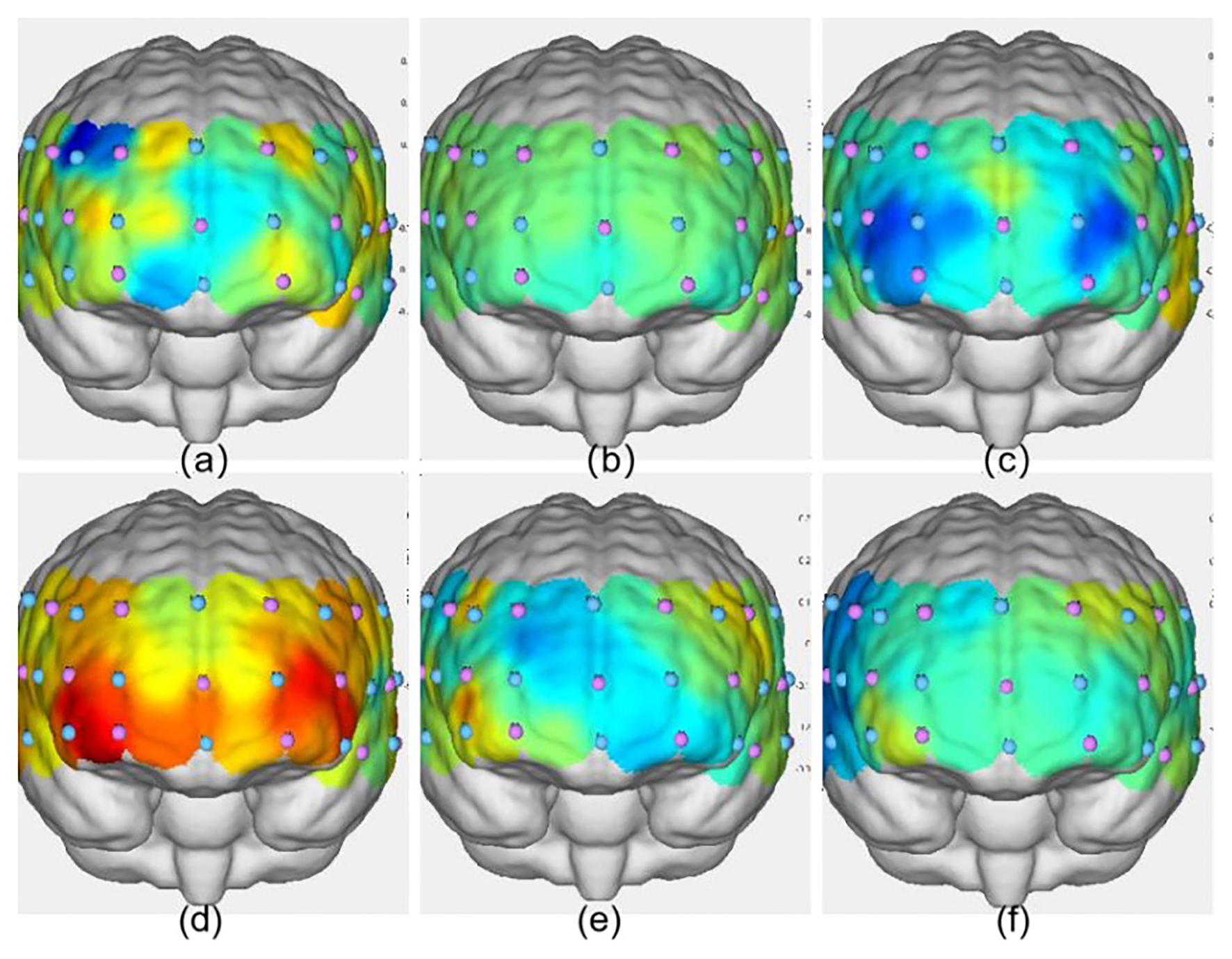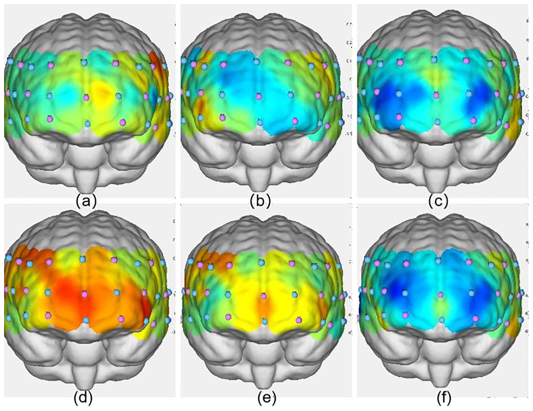 fNIRS data were preprocessed using NirSpark software (version 1.0; HuiChuang Medical, China). First, a wavelet motion artifact correction algorithm (WMAC) was applied to remove signal distortions caused by head or body movements. Then, a zero-phase digital bandpass filter (0.01–0.2 Hz) was used to eliminate high-frequency physiological noise (e.g., heart rate variability, 0.8–2.5 Hz) and low-frequency drift (e.g., Mayer waves, 0.04–0.15 Hz) (Hu et al., 2019). Finally, dual-wavelength optical signals at 730 nm and 850 nm were converted into relative concentration changes of oxygenated hemoglobin (oxy-Hb), deoxygenated hemoglobin, and total hemoglobin using the modified Beer–Lambert law (MBLL). Given the greater sensitivity and specificity of oxy-Hb to neural activity (Hoshi et al., 2001), this study focused on changes in oxy-Hb concentration as the primary indicator of cortical activation.