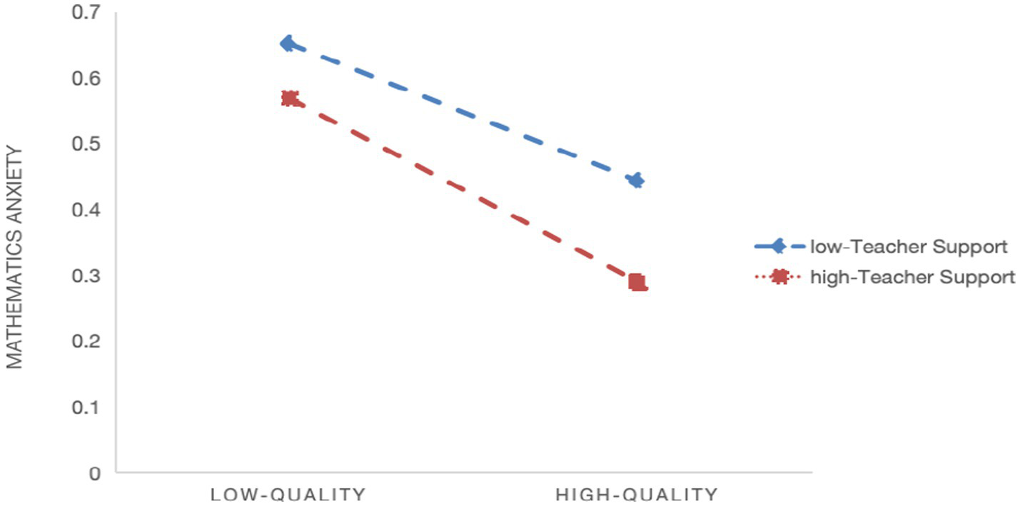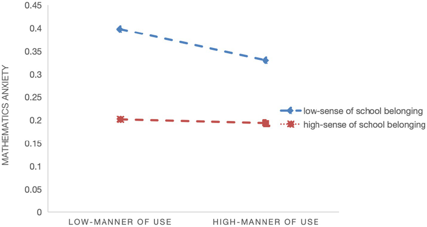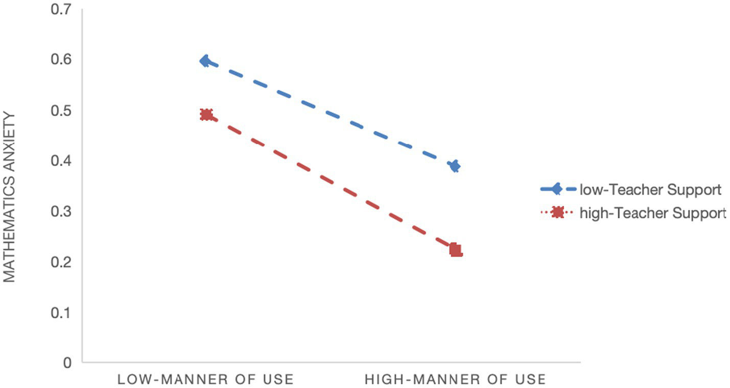 Hypothesis 2c: Teacher support moderates the relationship between manner of use and students’ math learning anxiety.