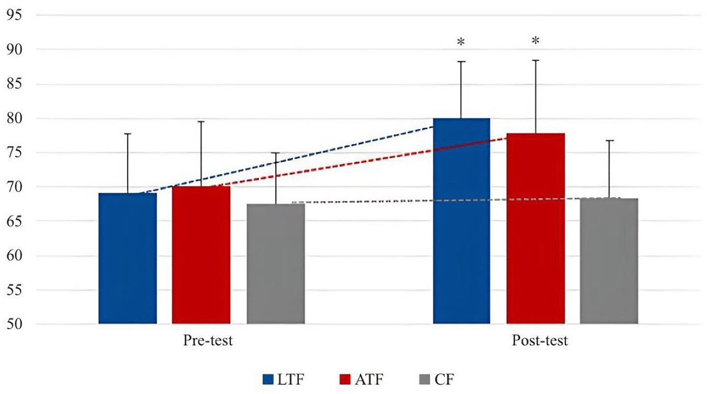 | LTF | 69.06 ± 8.64 | 80.68 ± 8.24 | 2.166 | <0.05* | |