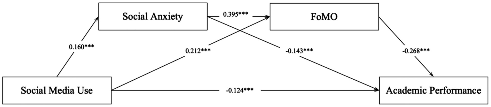 H4: FoMO and social anxiety sequentially mediate the relationship between social media use and college students’ academic performance.