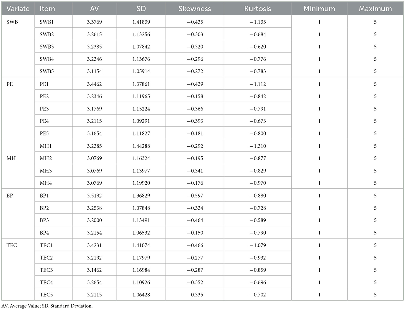 Despite the fact that our study provides new empirical verification for the effects of subjective wellbeing, physical activity on college students‘ mental health and behavioral performance, and the positive moderating effect of teacher empathic concern, there are inevitably some limitations. First of all, the sample selection has limitations, this study only conducted research on college students in Anhui Province, and in the coming decades, we can broaden our scope the geographic area of the research, as well as the research object to cover primary education, junior secondary, and senior secondary. In addition, we only considered subjective wellbeing and physical exercise as positive heart interventions, and in the days ahead, we can further consider the sway of family environment, social support, self-control and other factors on college students' mental health and behavioral performance.