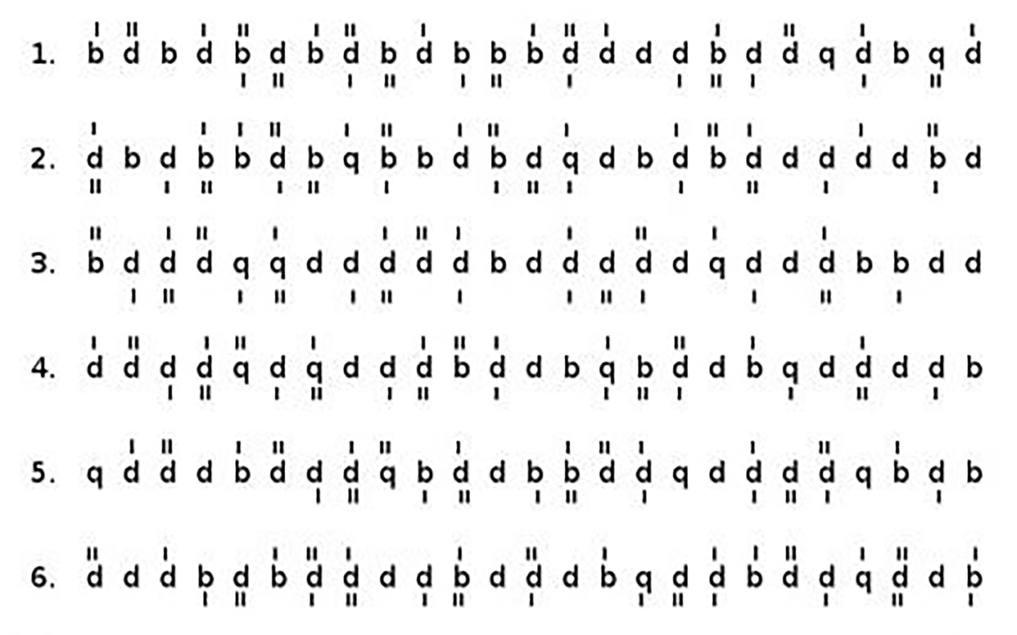 This test was developed by Brickenkamp in 1962 and can be applied to individuals between the ages of 9–60. There are 14 lines in the test form and 47 numbers in each line. There is a 20-s time limit for each line of the 14-line test. The test includes letters with 1, 2, 3 or 4 dots above or below them. In this test, letters can be found in 16 different ways depending on their number, the points they receive and their order. Participants are in-structed to identify the letter ‘d’ with exactly two dots, among similar distractor items. It was developed to measure the individual’s attention level, psychomotor speed, learning functions, selective attention and mental concentration. The test is evaluated using TN (total number of marked lines), E1 (number of digits skipped without being marked), E2 (number of letters marked incorrectly), CP (total number of marked lines), TN-E (test performance) and E% (error rate) scores. In this study, the TN-E score, which gives the total performance value of the test, was used. The reason for including the TN-E score, which represents the balance between psychomotor speed and selective attention, in the study is that the attention levels in the test battery are interpreted by looking at this score. In interpreting the test, the TN-E score calculations were made by following the instructions in the test battery (see Figure 1).