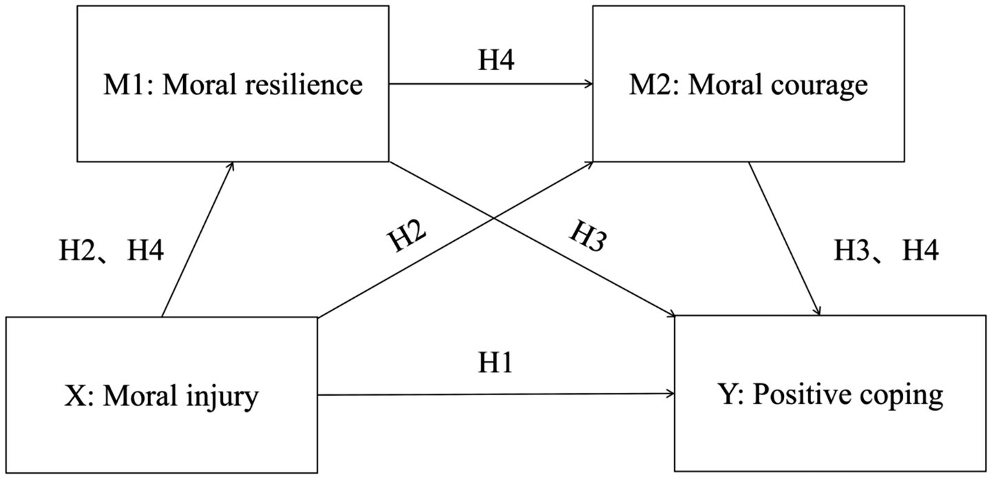 H4: Moral resilience and moral courage form a chain mediation from moral injury to positive coping style.