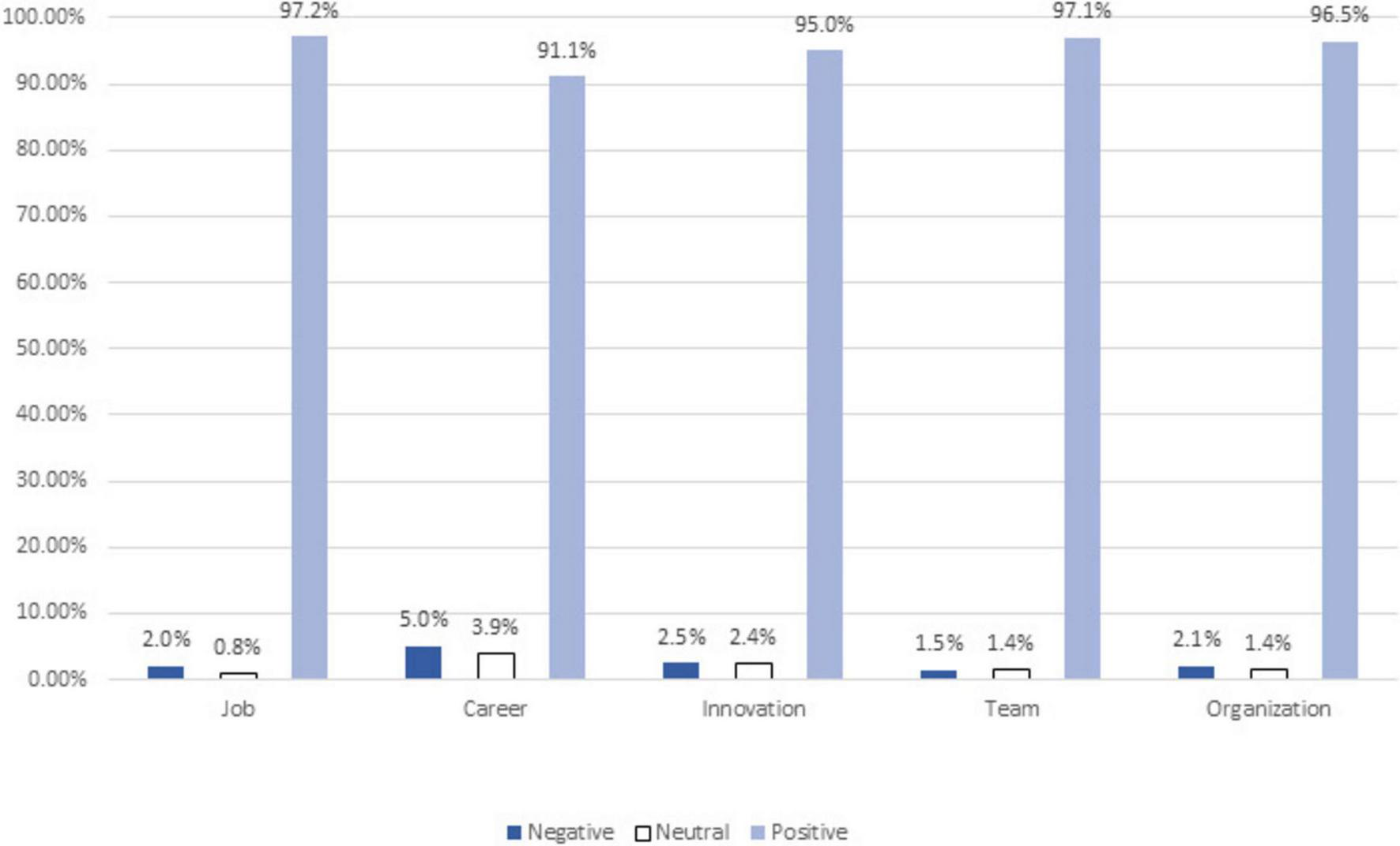 Thus, this measure was designed to examine the potential happiness halo effect, reflected in the tendency to evaluate happy colleagues more positively on work-related traits that are not directly related to happiness. The internal consistency of the scale, as measured by Cronbach’s alpha, was high across all five dimensions: Job (α = 0.83), career (α = 0.71), innovation (α = 0.87), team (α = 0.79), and organization (α = 0.82). A sample item: “The happier employees are, the less/more they satisfy the quantity of work output that is officially required.” The full questionnaire is presented in the online Supplementary section 1.