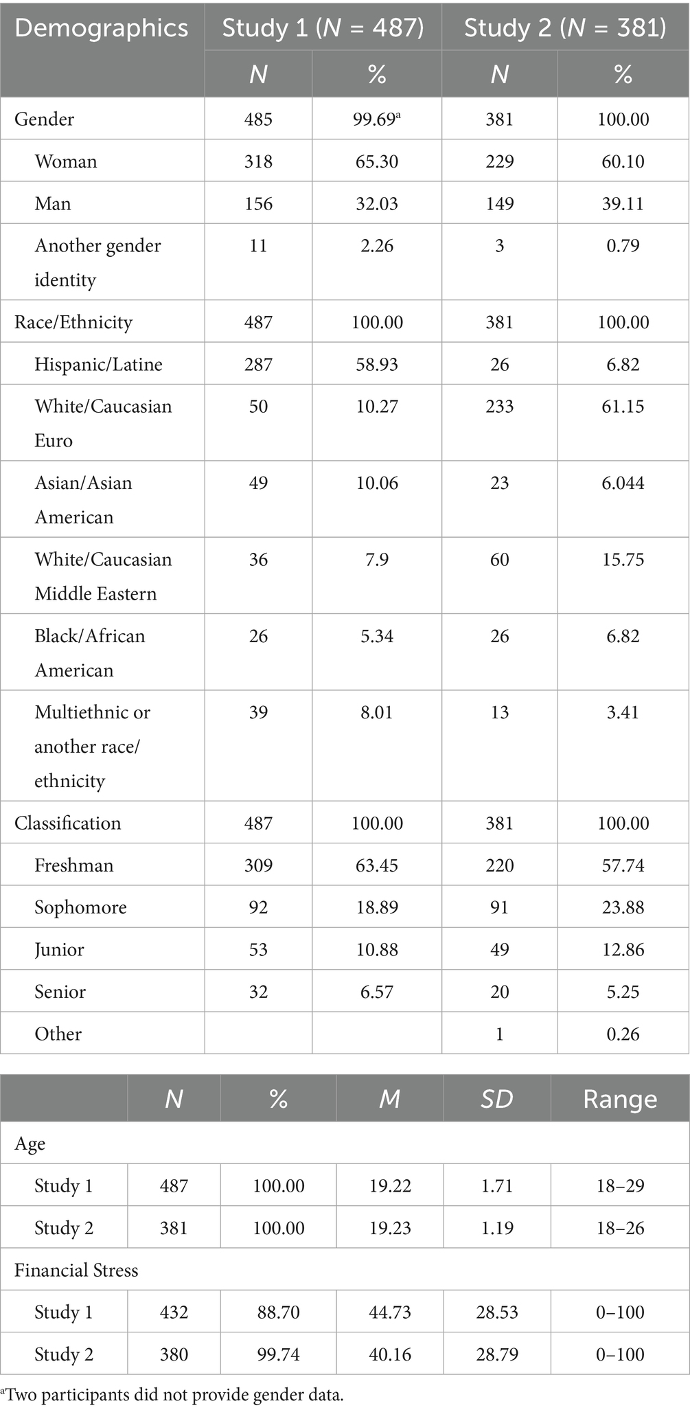 Table 1. Participant characteristics in studies 1 and 2.