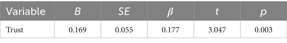 Images are formed and shaped by human senses, experiences, and stimuli (Pylyshyn, 1973; Reynolds and Gutman, 1984). An instructor’s image includes competency, expertise, attitudes, and roles. Competency and expertise are objectively evaluated aspects related to an instructor’s ability, whereas attitude and role are emotional aspects that are subjectively evaluated. Instructor expertise refers to outstanding skills and theoretical knowledge in a certain field, and plays an important role in developing learners’ trust (Kao et al., 2017). McAllister (1995) states that learners begin to trust their instructors when they recognize their abilities, implying a close relationship between instructor image and trust. Similarly, Zhang and Chelladurai (2013) suggest that competence, stability, and sincerity are key elements in forming instructor trust. However, attitude did not have a significant effect on the instructors’ trust. Chae et al. (2023) explained that it is difficult to understand another person’s empathy and intentions in non-face-to-face situations. Although some studies have reported that instructors’ attitudes influence trust even in online contexts (Schrodt et al., 2009), other research has shown that expertise and competence in delivering clear information are more critical in forming trust, which aligns with the present findings (Houser and Frymier, 2009; Witt et al., 2004). In face-to-face contexts, direct communication enables learners to more clearly perceive instructors’ attitudes, which has been identified as a key factor in establishing credibility (Li et al., 2021). In contrast, in this study, participants engaged with instructors through media, suggesting that, without the support of specific instructional technologies (Anderson et al., 2001), building trust may be more challenging. Thus, attitudes appear to exert an indirect rather than a direct influence on instructor trust when compared with expertise and competence.
