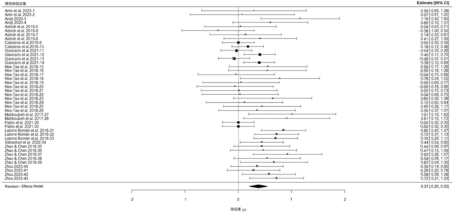 Forest plot of the meta-analysis on the intervention effects of physical activity on social-emotional competence in primary school students.