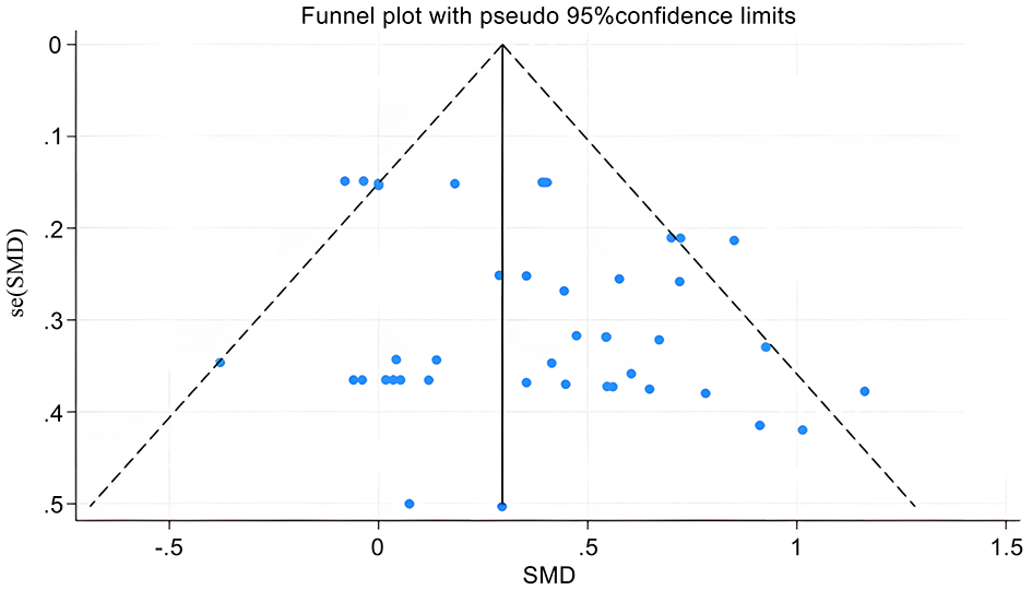 Publication bias was assessed using Stata version 18.0 software. The potential for publication bias was evaluated through funnel plots and tested using Egger's regression test (Egger et al., 1997).