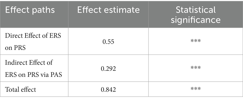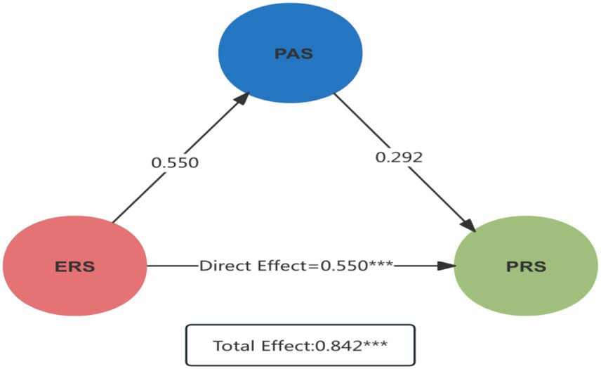 The proposed structure adopts a multivariate simultaneous path modeling approach, enabling parallel estimation of both the indirect path (ERS → PAS → PRS) and the direct path (ERS → PRS). This unified framework allows for the joint assessment of direct and mediating effects, thereby avoiding the potential estimation bias that may arise from separate path modeling strategies.
