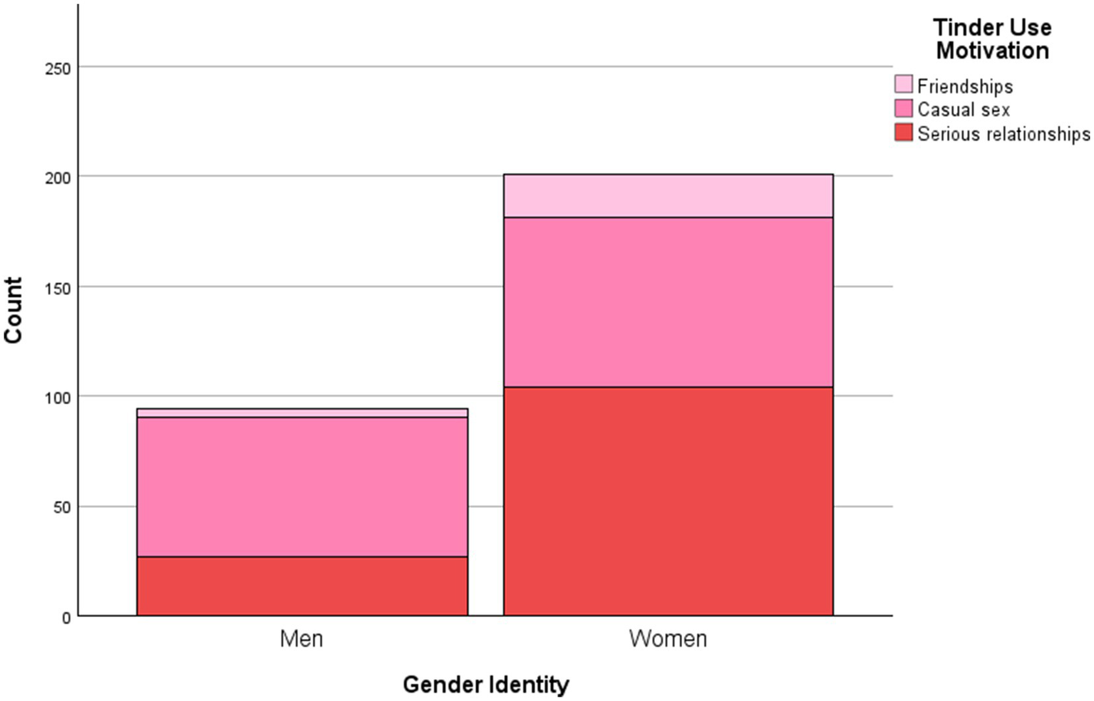 H1: Men are more likely than women to use Tinder for casual sex, while women are more likely to use it for serious relationships or friendships.