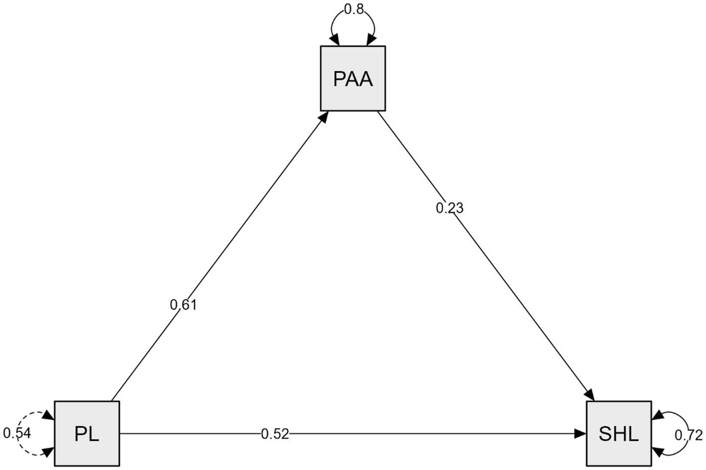 PL, physical literacy; SHL, sustainable healthy lifestyle; PAA, physical activity attitude.