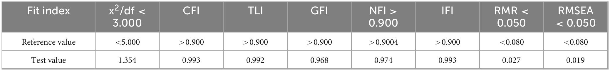 Confirmatory factor analysis (CFA) confirms the factor structure of observed variables and provides tools for measuring model validity in SEM (Marsh et al., 2020). The results showed that the fitting of each model is good, and scale validity is good (Table 3).