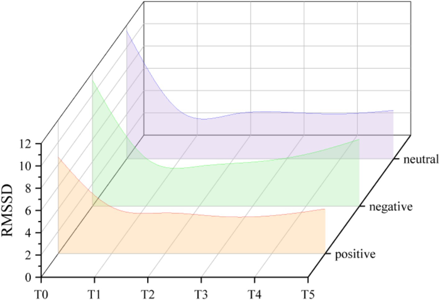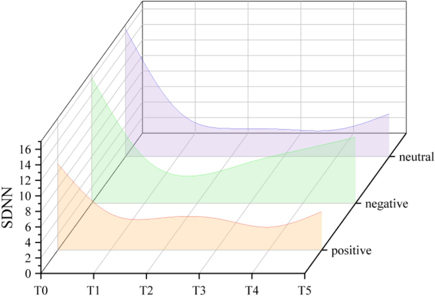 Statistical analyses included descriptive statistics (means and standard deviations) for all variables. We did a 3 (question formulations: positive, negative, neutral) × 6 (measurement time: T0, T1, T2, T3, T4, T5) repeated-measures ANOVA with the ratings of affective responses, SDNN, and RMSSD as the dependent variables, respectively, to see how different question formulations affected affective responses and HRV during acute exercise. The Bartlett’s test of sphericity showed a significant result (p < 0.05), indicating that the assumption of sphericity was violated. As a result, the Greenhouse–Geisser correction was applied to fix this violation. Significant level was set at 0.05. SPSS 26.0 was used to analyze all the data.