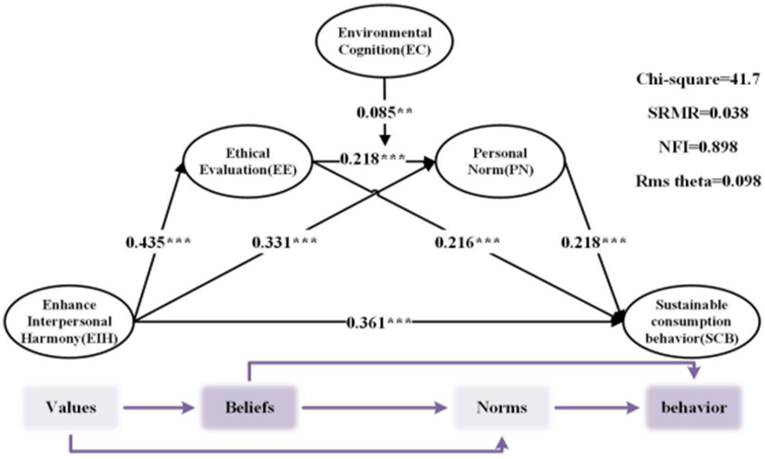 Keywords: environmental cognition, ethical evaluation, sustainable consumption behavior, personal norms, interpersonal harmony
