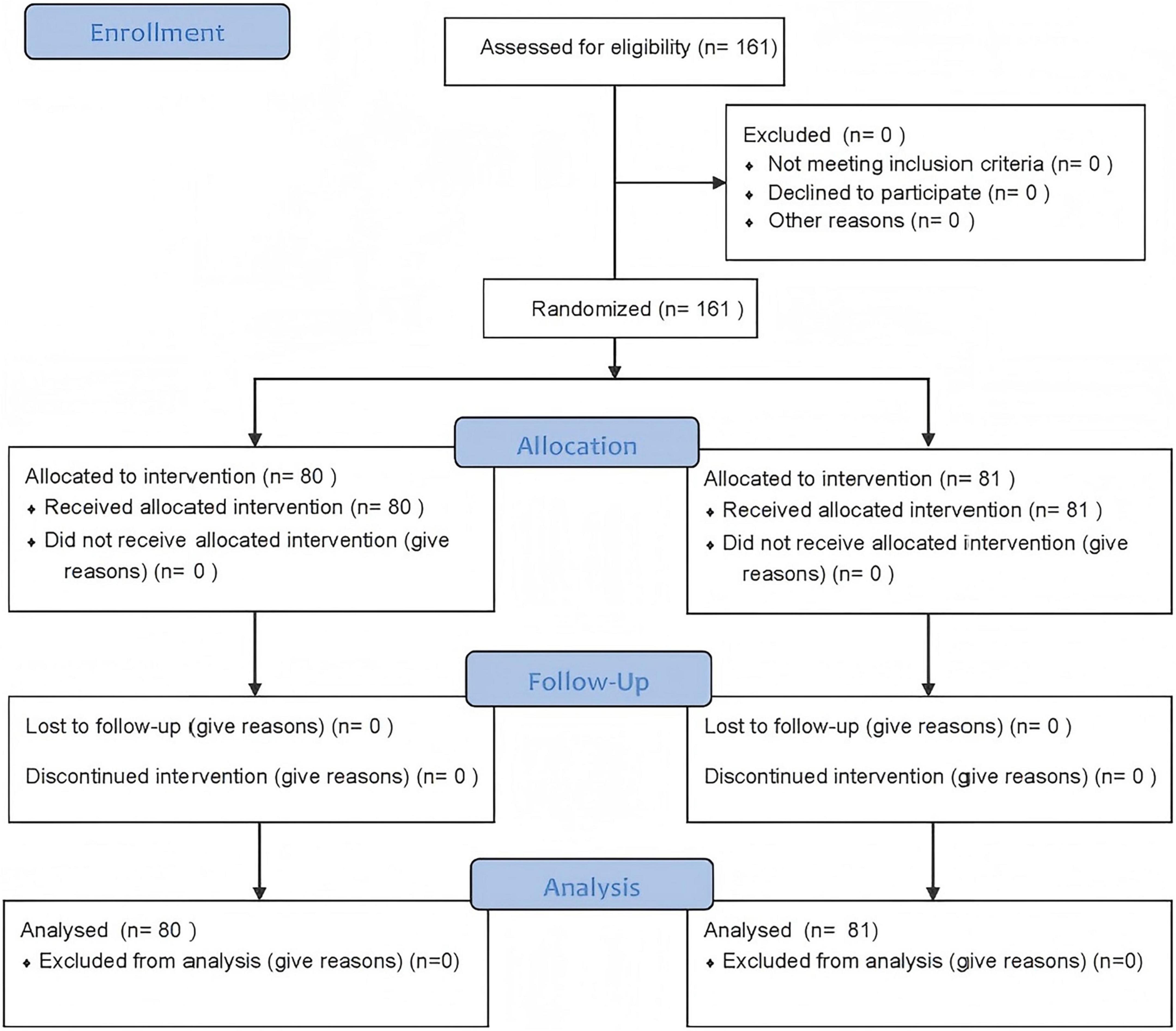 This study employed a cluster randomization method based on practical considerations such as school administration. Using all fifth-grade students at a primary school in Suzhou as the sampling frame, four fifth-grade classes were randomly selected. Subsequently, a researcher from the study team who would not participate in subsequent interventions or evaluations assigned these four classes numbers 1–4 and randomly divided them equally into two groups. The generated random allocation sequence was sealed in opaque envelopes and remained unopened until baseline data collection was completed. Another researcher then opened the envelopes and implemented the allocation to ensure the fairness of the process.