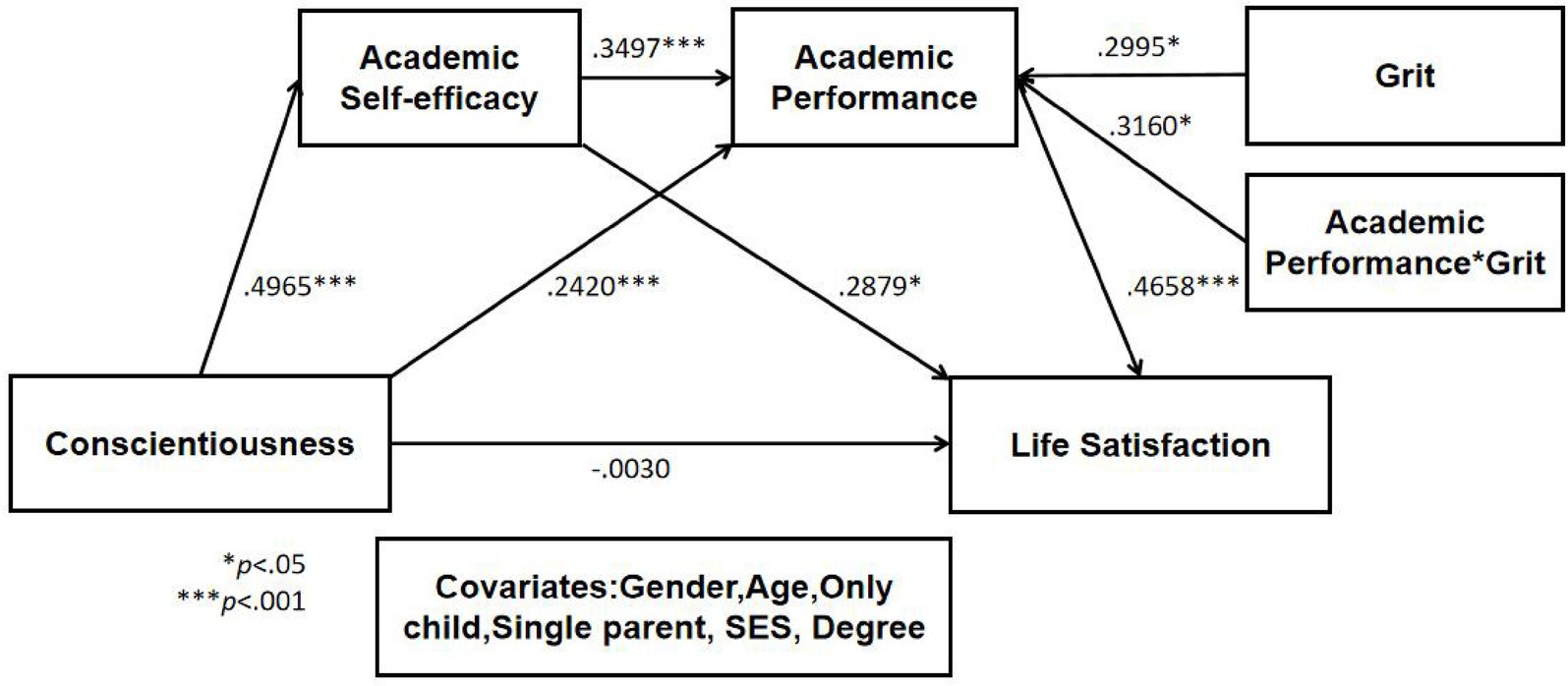 Keywords: academic performance, academic self-efficacy, conscientiousness, grit, life satisfaction, moderated mediation effect