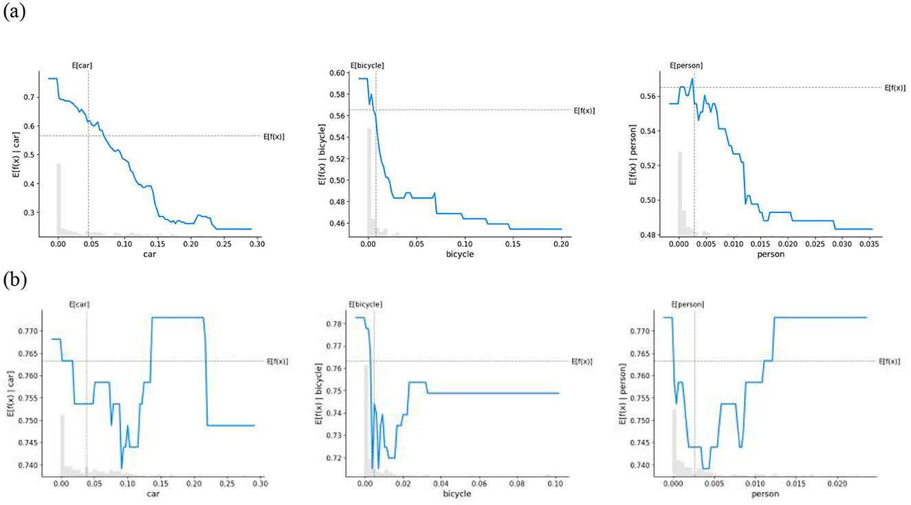 Figure 8. PDPs for the effect of artificial elemental features on security perceptions. (a) Child (b) Adult.