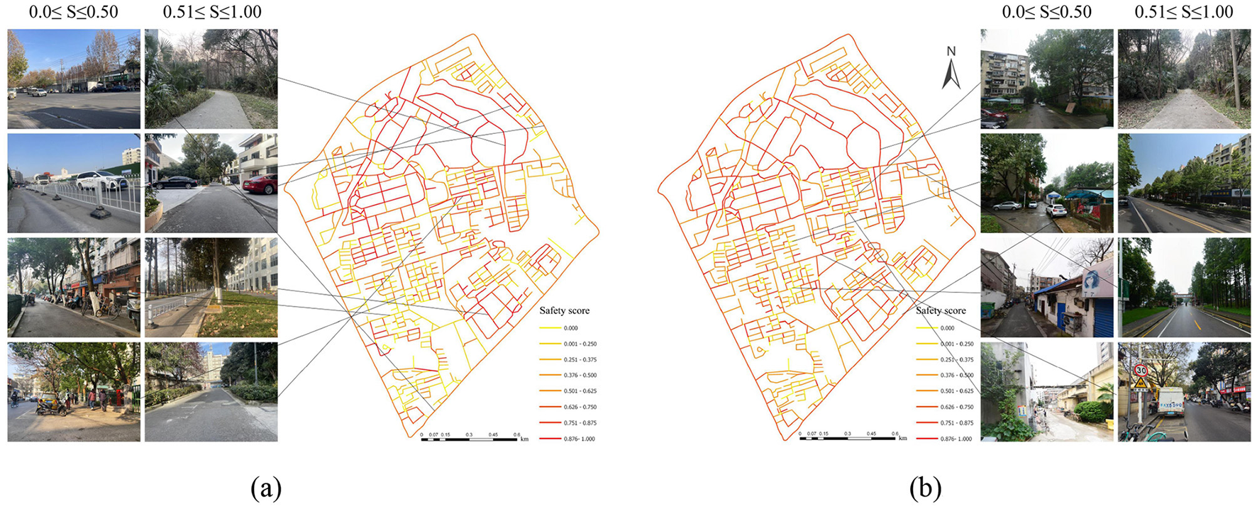 Environmental safety perception map and SVI examples. (a) Child (b) Adult.