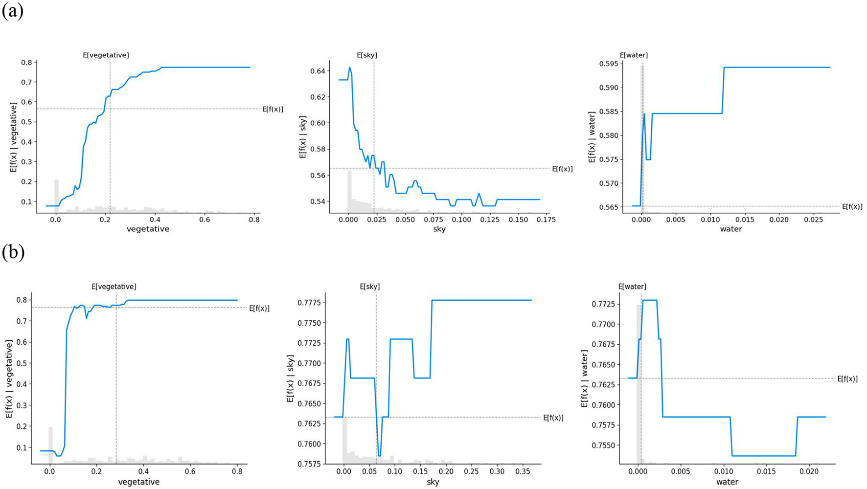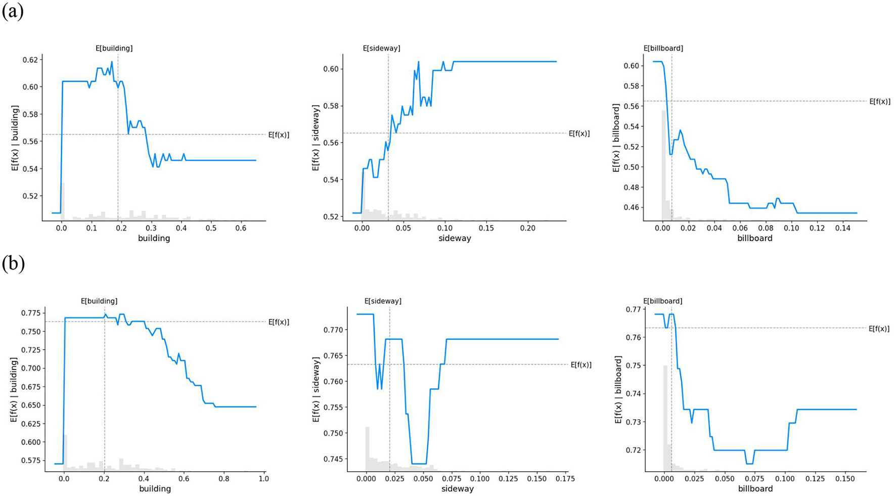 PDPs for the effect of natural elemental features on security perceptions. (a) Child (b) Adult.