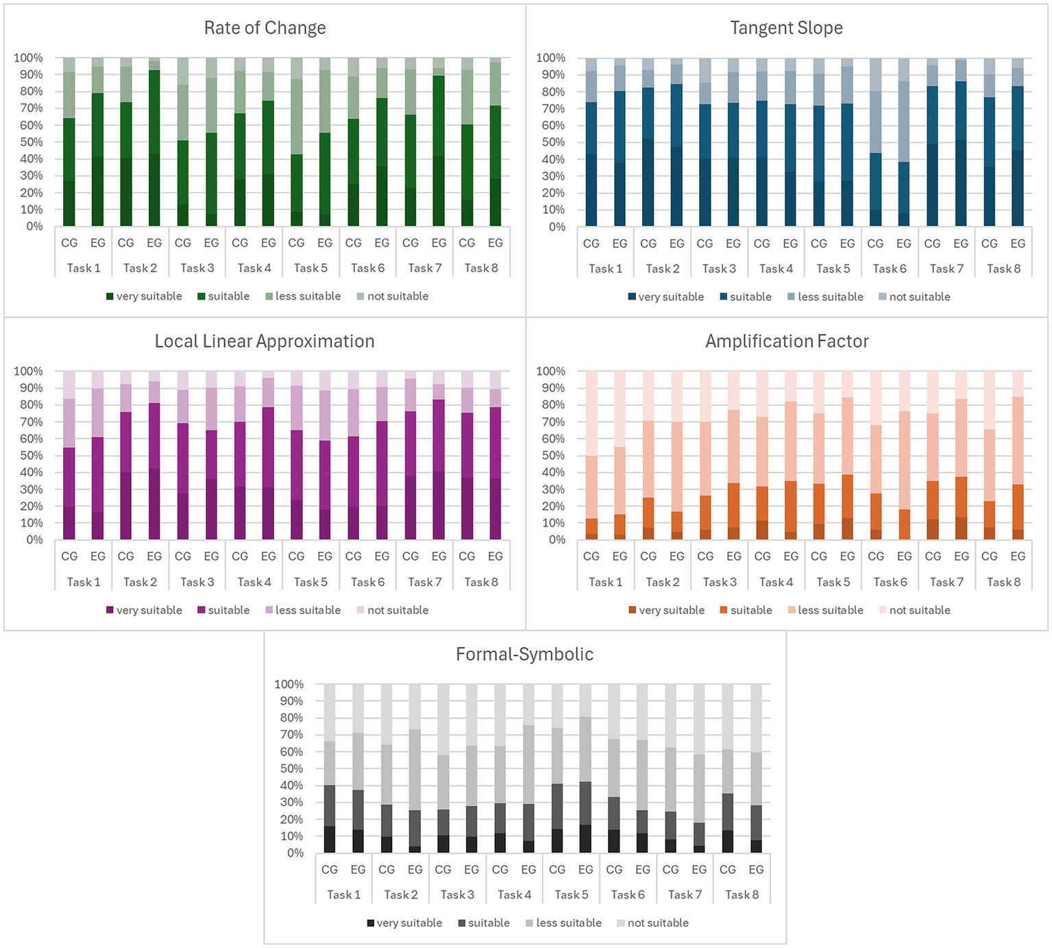 The present study aims to evaluate the MaTeGnu TPDP concept by assessing the students’ understanding, as central objective of the project. This evaluation employs an experimental-vs.-control-group design, which involves a comparison of the utilization of basic mental models (BMM) and the conceptual understanding of students regarding the concept of derivatives in classes, where teachers participate in MaTeGnu TPDP (NEG = 151) and in other classes at the respective schools (NCG = 571).