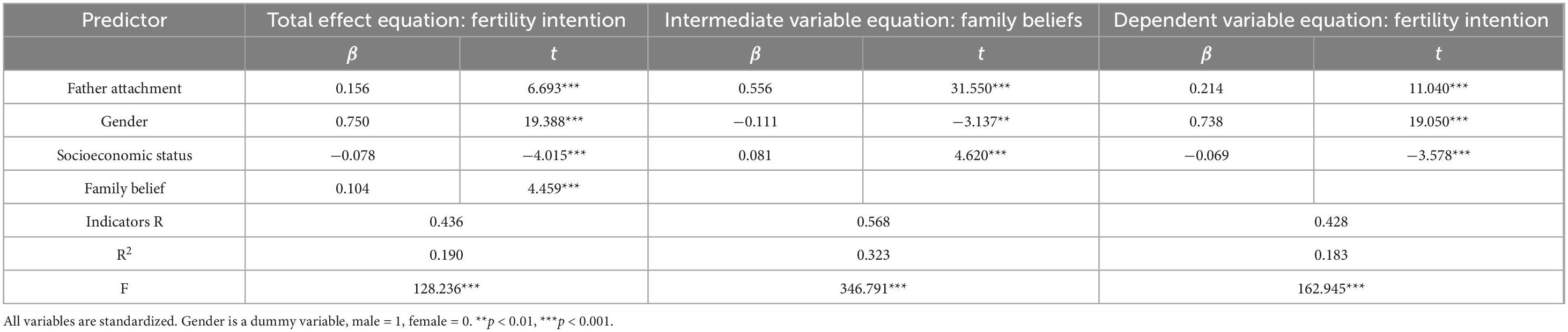 5.2 Mediation analysis: partial mediating path from “father’s attachment → family belief → fertility intention”