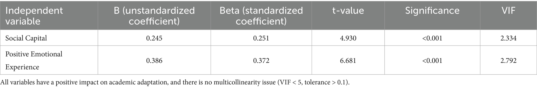 Citation: Tong Q, Cheng J and Yang Y (2025) The influence of social capital on college students’ academic adaptation: the mediating role of positive emotional experience. Front. Psychol. 16:1670147. doi: 10.3389/fpsyg.2025.1670147