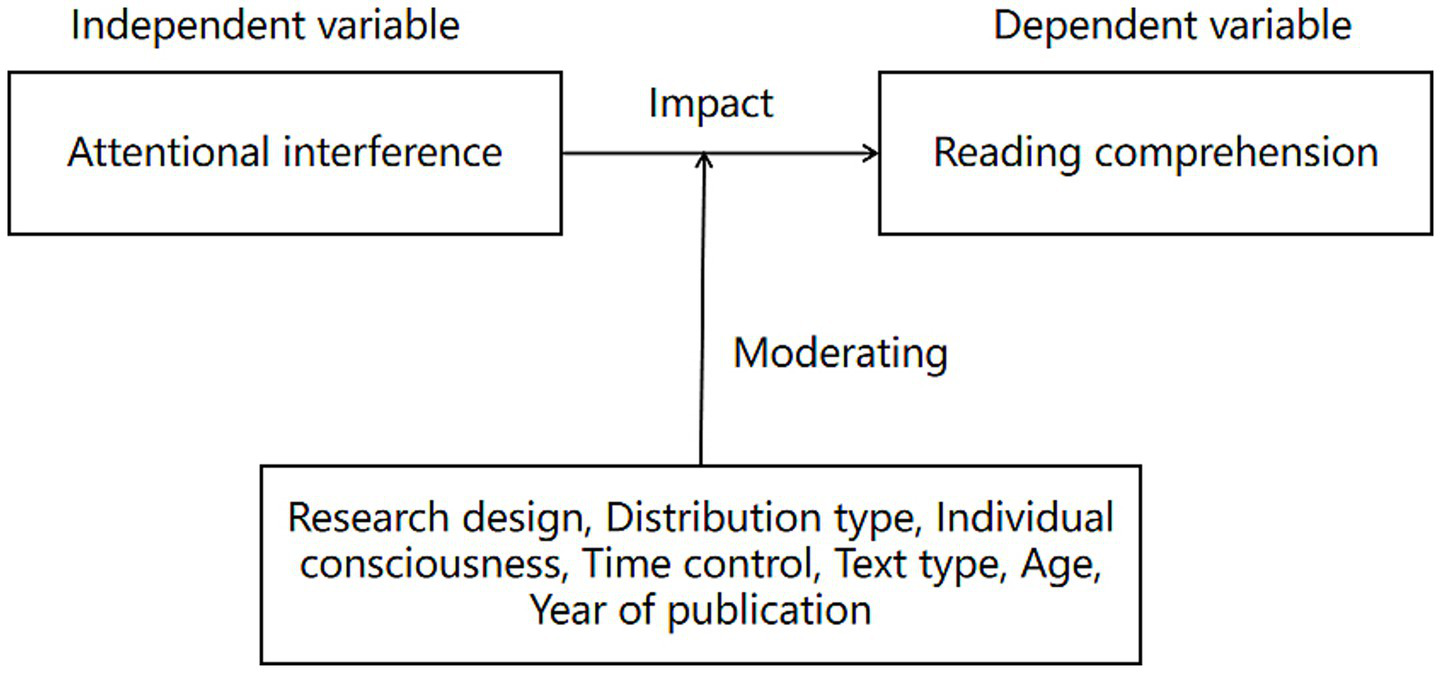 Previous empirical studies have identified three primary patterns of attentional interference effects on reading comprehension in digital contexts: significant positive, significant negative, and non-significant effects. The principal research question guiding this study was as follows: What is the cumulative effect of attentional interference on reading comprehension in online environments? Drawing on the findings from the aforementioned literature, multiple moderating variables often influence the relationship between distraction and reading comprehension in online environments. Subsequently, the secondary research question posed was: Which factors moderate the effect of attentional interference on reading comprehension in online environments?