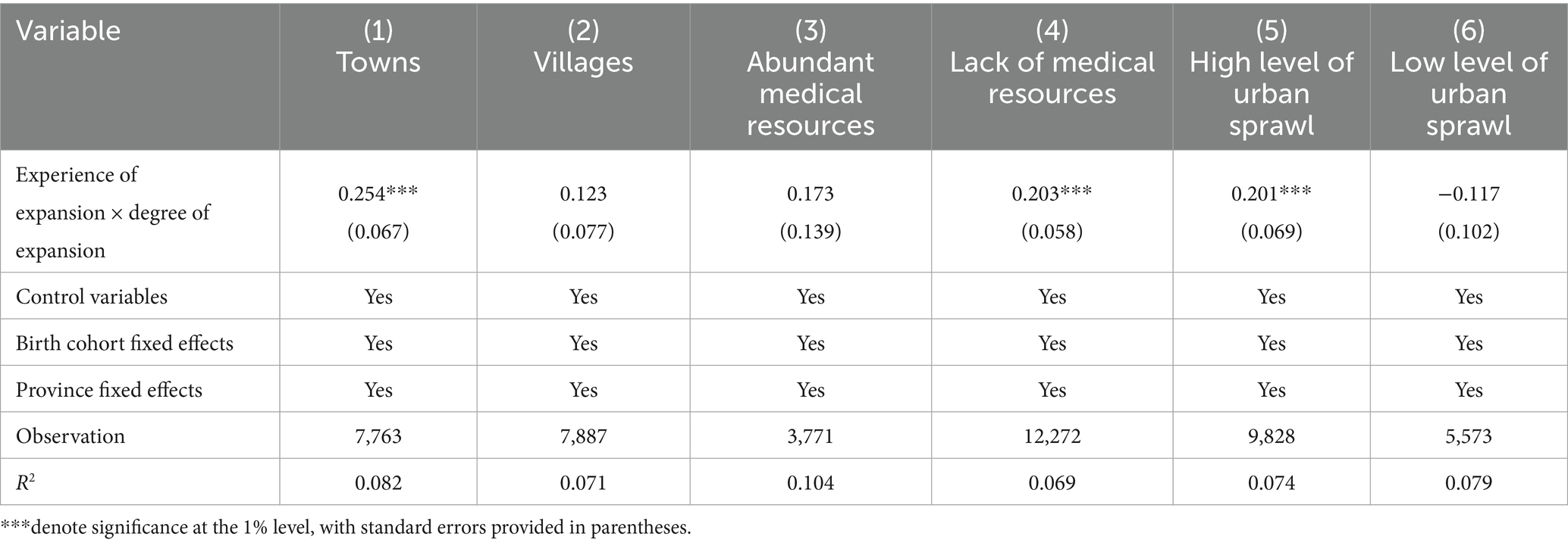 After the aforementioned studies, this research affirms that higher education influences public environmental perceptions and elucidates the process by which this effect is generated; yet, it remains pertinent to further explore the following inquiries: What kind of variation is there in the influence of higher education on public environmental perceptions? Do varying identity groups or areas amplify the influence of higher education on public environmental perceptions due to their inherent differences? This section examines the question of heterogeneity in light of these possibilities.