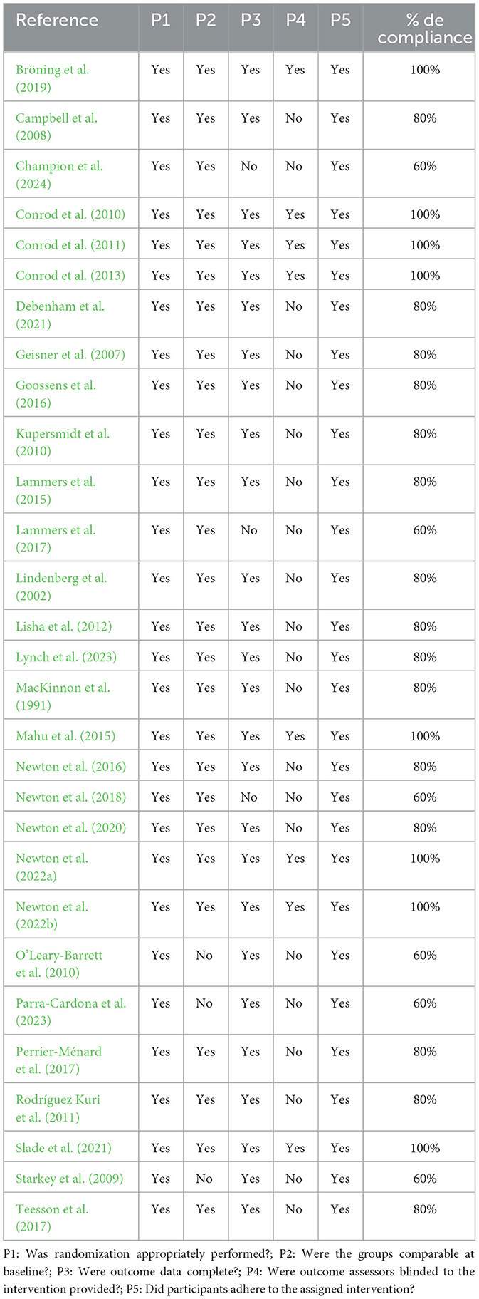 The methodological quality of the included articles was assessed using the Mixed Methods Appraisal Tool (MMAT) (Hong et al., 2018). The MMAT is a critical appraisal tool designed for systematic reviews that include quantitative, qualitative, and mixed-method studies. For randomized controlled trials (RCTs), the specific MMAT scale for RCTs was used.