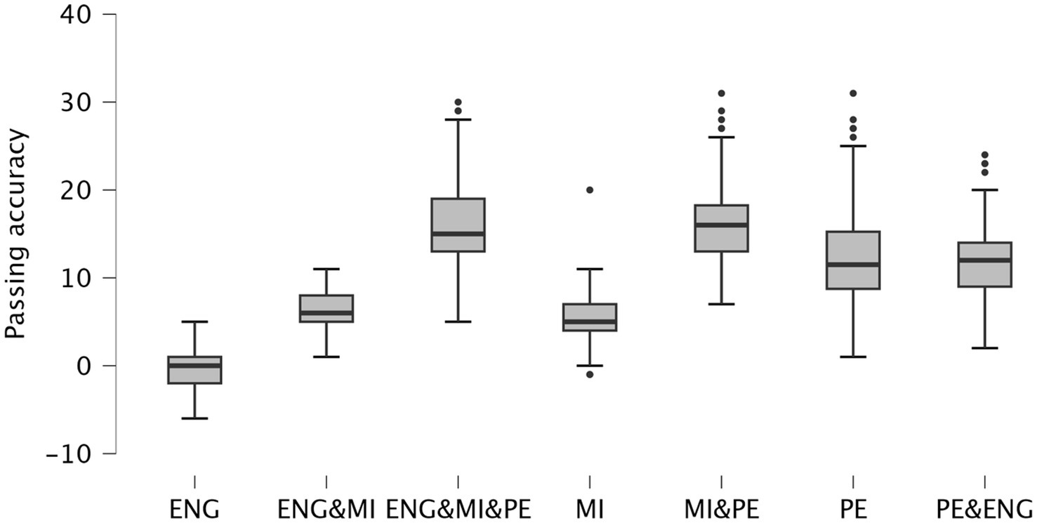 The classes were conducted according to the regular school schedule and formed part of the students’ standard curriculum. To minimize sequencing effects, students experienced the activities in different orders. Given the large number of possible permutations (7 conditions – 5,040 possible sequences) and the practical constraints of implementing all sequences in a school setting, only three specific combinations were used, which were selected by generating random sequences from the multiple possible options. These were: Ordering 1 (PE → MI → ENG → PE + MI → PE + ENG → MI + ENG → PE + MI + ENG), Ordering 2 (ENG → PE + MI + ENG → PE + MI → MI → MI + ENG → PE + ENG → PE), and Ordering 3 (MI + ENG → PE → PE + MI → PE + MI + ENG → PE + ENG → MI → ENG).