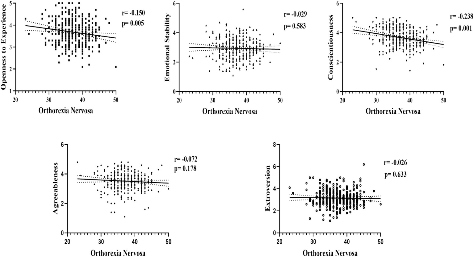 Correlation results between personality traits and orthorexia nervosa.
