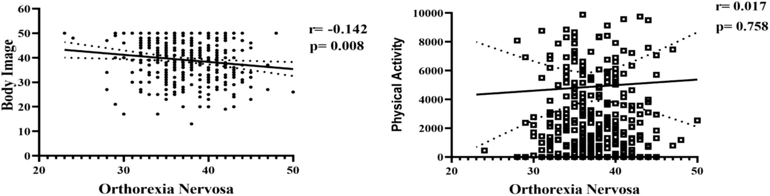 Correlation results between body image, physical activity, and orthorexia nervosa.