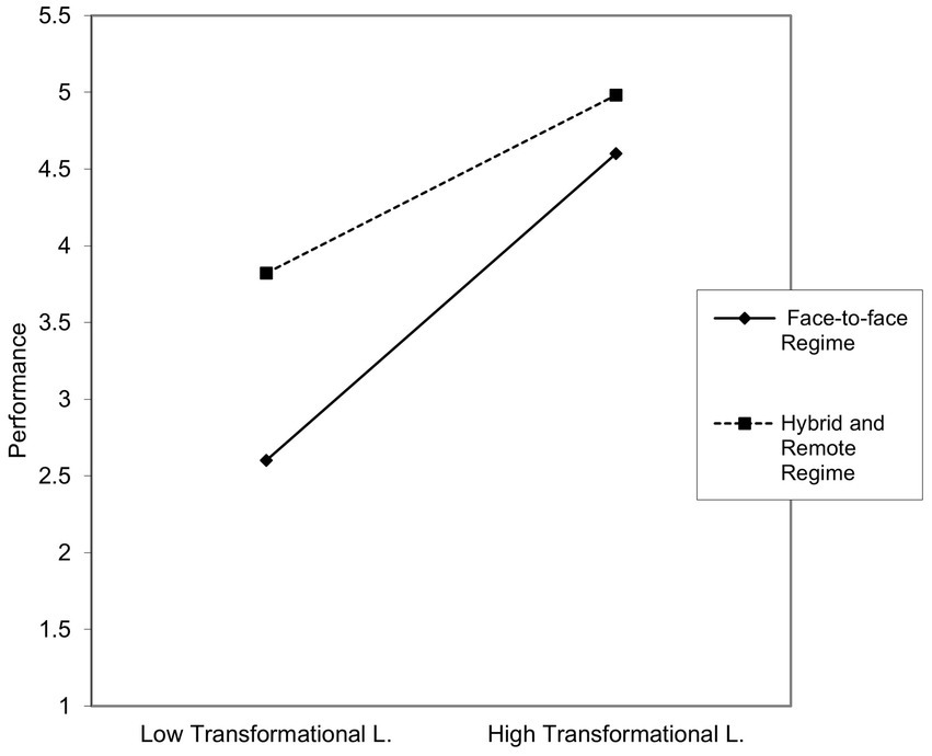 Leadership will not work in the same way for the three work regimes (face-to-face, hybrid, and remote), nor can anyone take on a leadership role (Clarey, 2022) to manage and meet the needs of those they lead in the three different work modalities. In the context of remote work, leadership should be transformational (Lundqvist et al., 2022), promoting worker autonomy and fostering a vision linked to innovation and evolution, which in turn positively impacts employee job satisfaction (de Melo et al., 2022). Not only should transformational leadership be considered, but transactional leadership should also be considered, which tends to thrive in maintaining high productivity in the daily tasks performed by employees (Kairupan, 2023). Adaptation to the remote context is an ongoing task, regardless of leadership style (Coser et al., 2024). Thus, both transformational and transactional leadership contribute to better organizational performance (Coser et al., 2024; Dong, 2023), including in remote settings. The effectiveness of leadership can also vary depending on the work regime in place (Lundqvist et al., 2022) and may have a greater impact when employees work in person. Not only is it influenced by the regime, but it also can affect or condition, to a certain extent, the perception of quality of life, especially in face-to-face regimes, since this tends to be less impacted by leadership in remote regimes (Coser et al., 2024). We can see not only the differentiating role of leadership depending on the work regime, but also how it affects those being led.